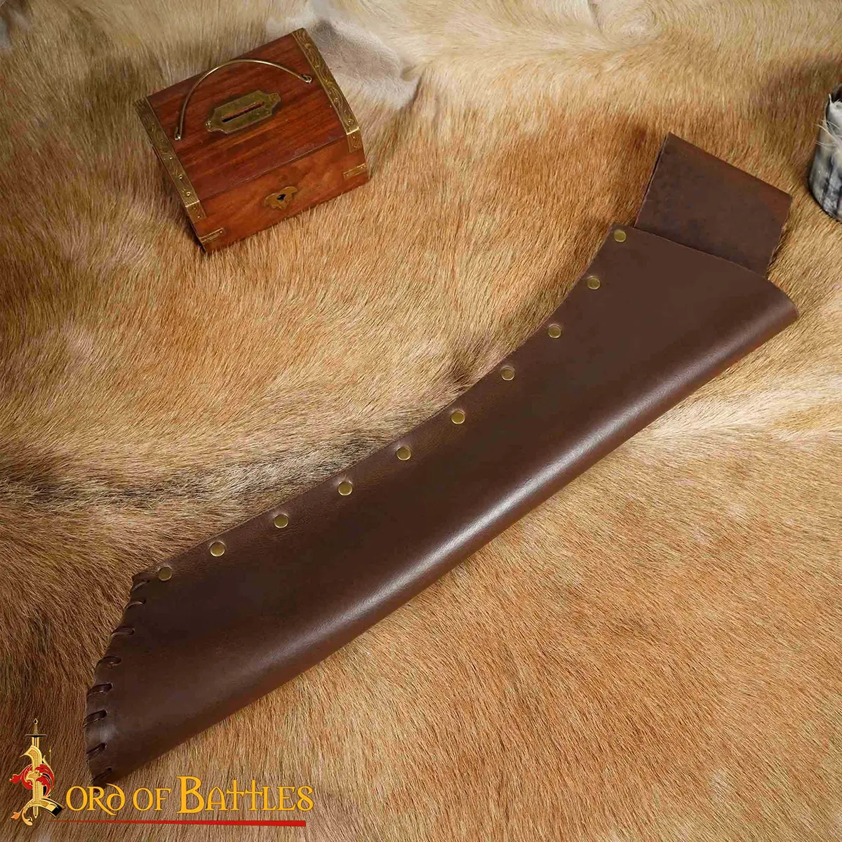 Crafted from thick 3 – 3.2 mm genuine leather, the body holds its shape even with repeated use. The structure is reinforced with antique brass rivets on one side, for long-term durability while maintaining a refined medieval look. The leather develops a natural patina over time, enhancing its character.