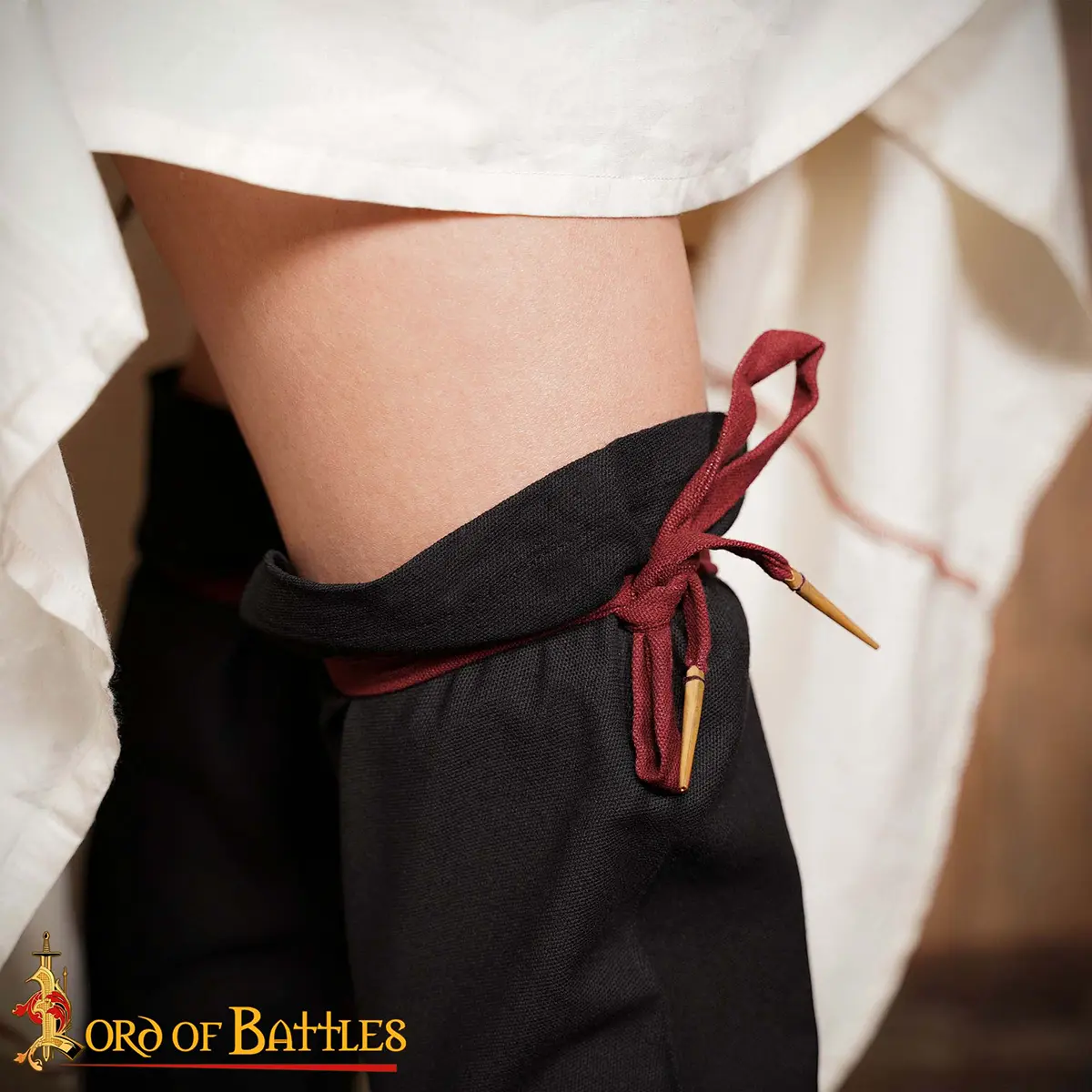 Imagine attending a medieval fair, clad in your finest gown, the rich fabrics swirling around you as you stroll through the marketplace. Your feet, snug in your shoes, are free from discomfort, thanks to our thoughtfully designed hoses. Their sturdy canvas construction protects your legs from the rough interiors of your footwear, adding comfort during long hours of wearing shoes. Additionally, the lovely lacing found above the calf not only adds a touch of elegance but also ensures that your hoses stay securely in place as you move.