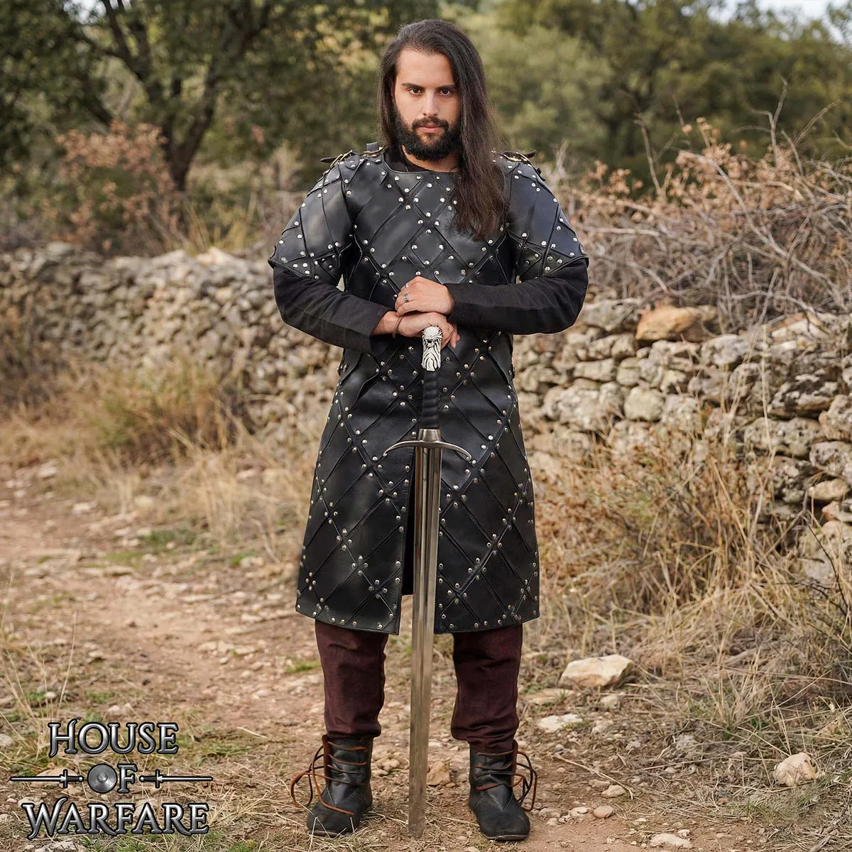 The Lord of the North Leather Brigandine is a striking piece of medieval-style armor designed for warriors and fantasy enthusiasts. Made from durable leather and reinforced with riveted leather plates, this armor offers both protection and authentic historical style.