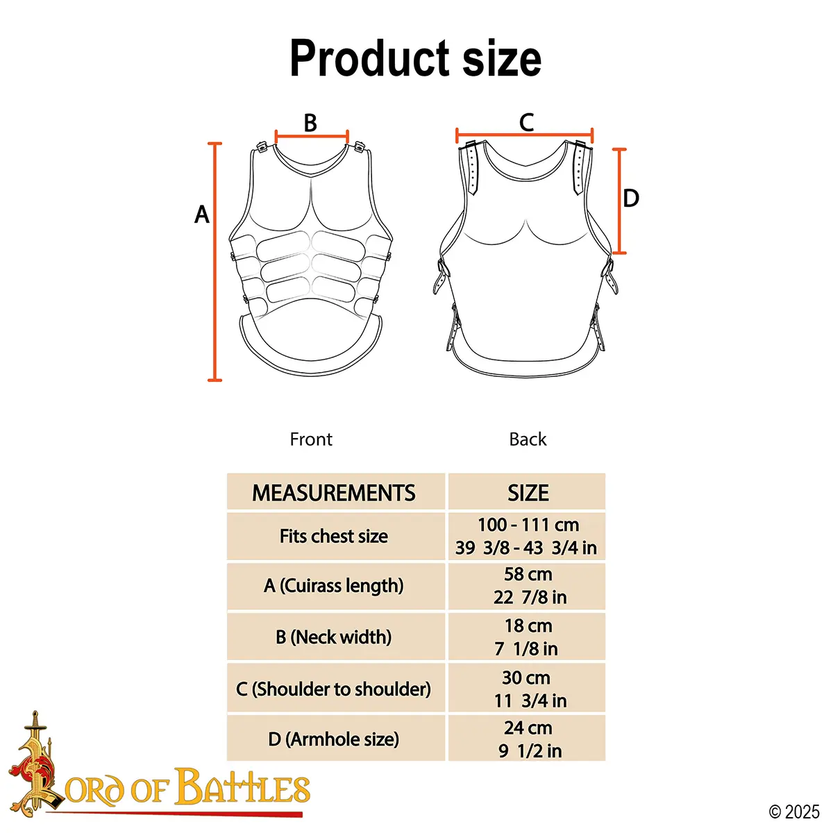 For comfort and realism, the cuirass has adjustable genuine leather straps and brass buckles at the shoulders and sides for a secure and customizable fit. The back plate complements the front’s muscular detailing with a smooth, contoured shape for movement in events or performances.