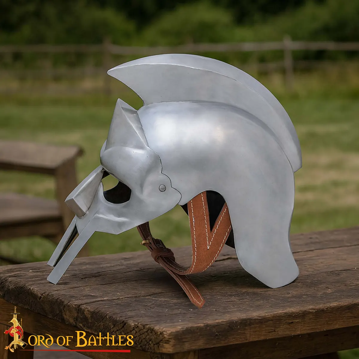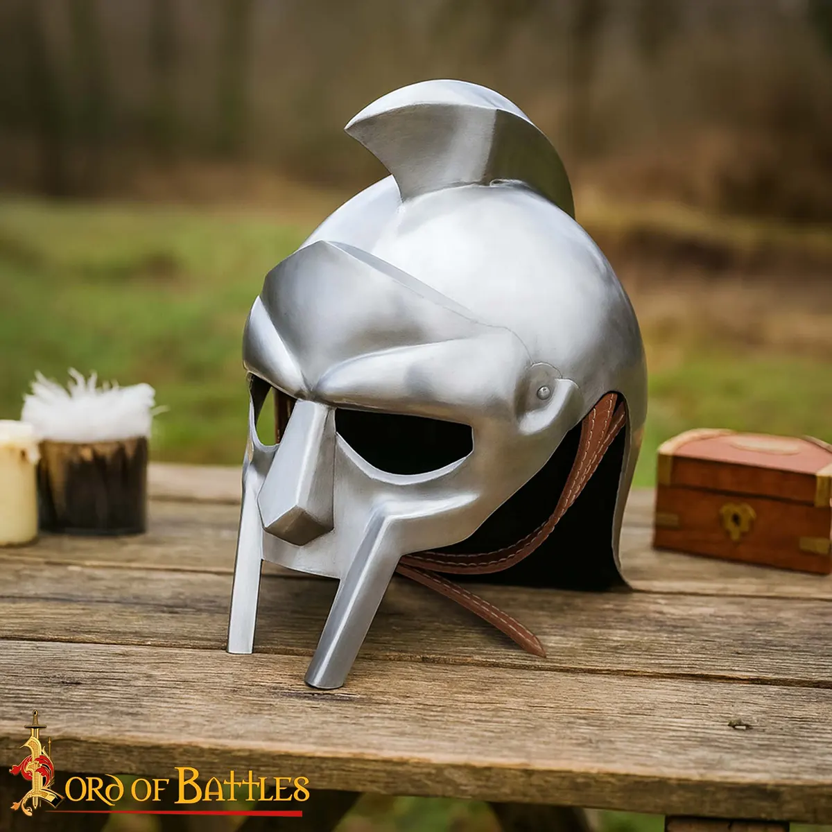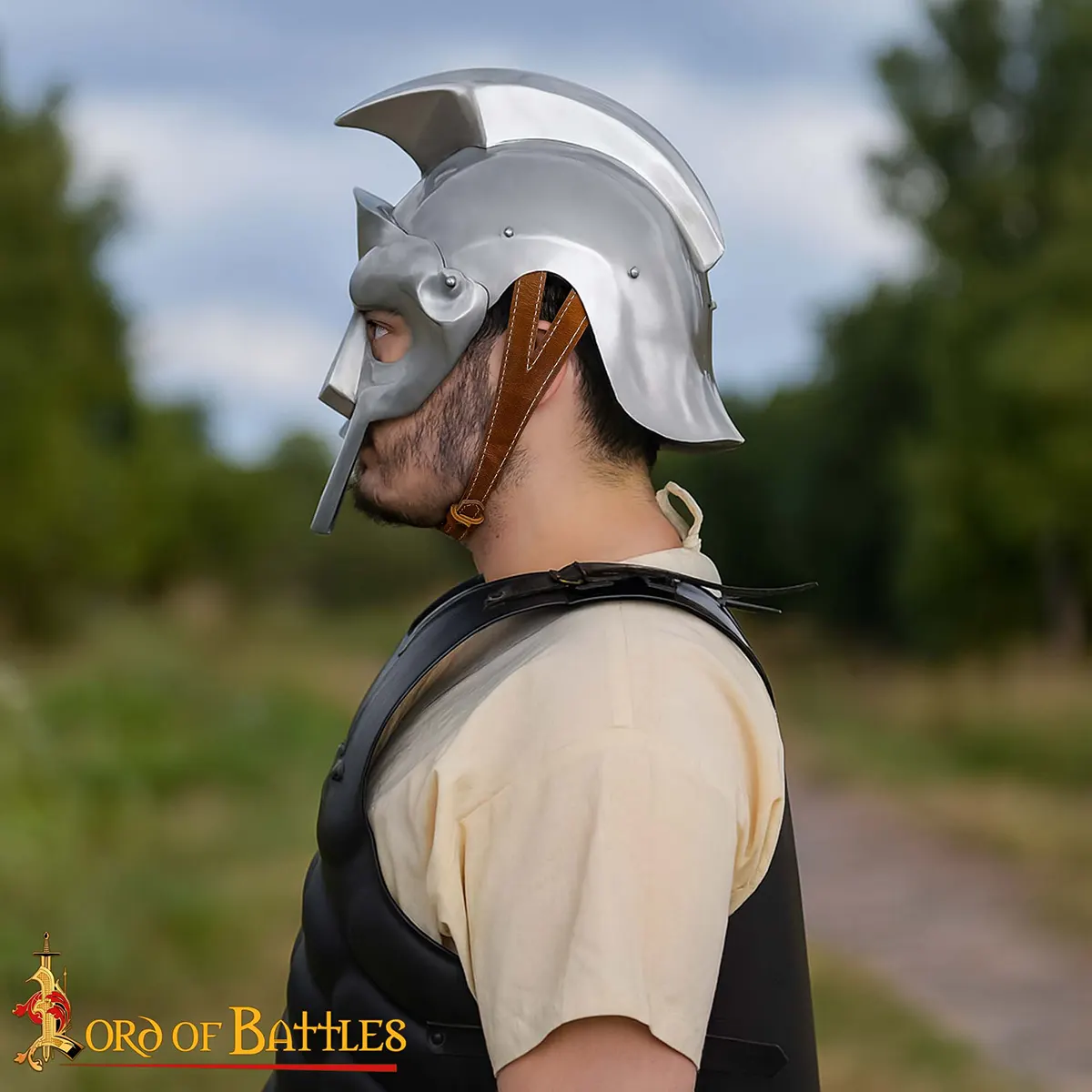 Channel the spirit of the Colosseum with our Maximus Gladiator Helmet, a bold recreation inspired by the iconic design made famous in Roman cinema. While the heroic character of Maximus Decimus Meridius is fictional, the helmet draws from authentic Roman gladiatorial styles, blending history with cinematic legend.