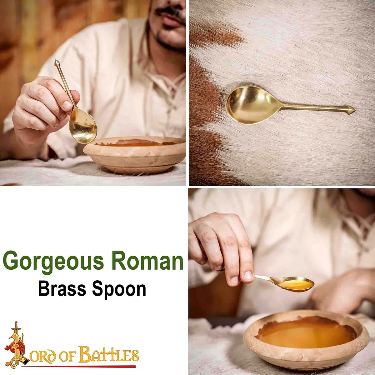 Transform your dining experience with our Roman Spoon Set! Made from solid brass, these spoons enhance your meal’s historic flavor.