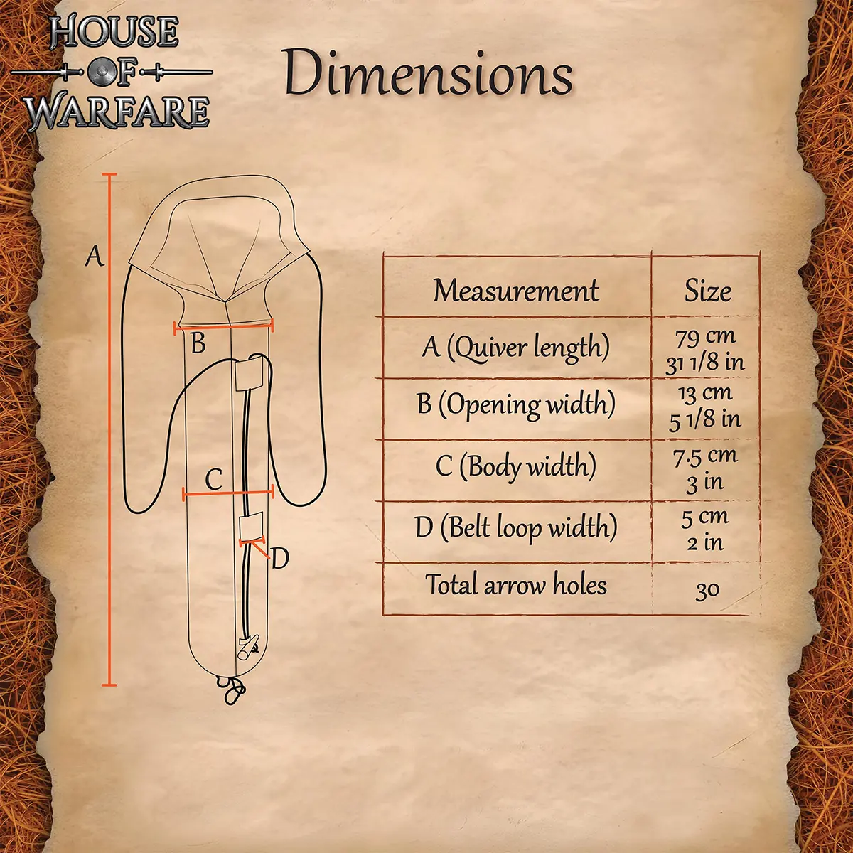 With its generous length and wide opening, this quiver offers reliable storage and easy access in battle, on the range, or at medieval fairs. Its natural canvas look with authentic details makes it an excellent addition to any archer’s kit.