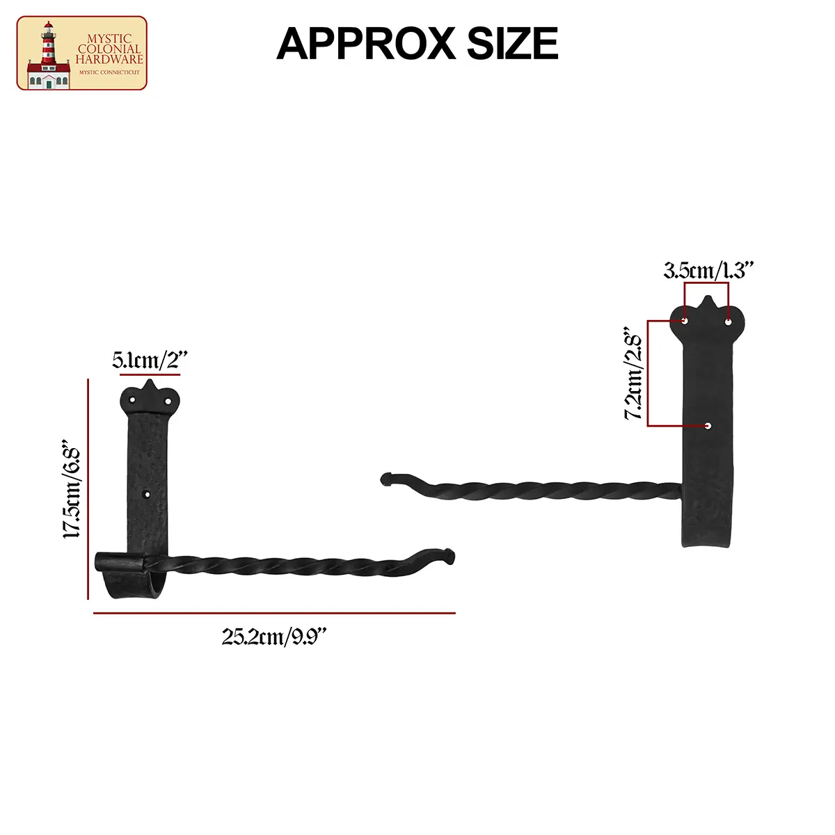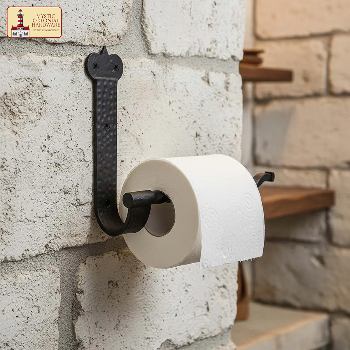 With its compact wall-mounted design, the holder can be easily installed in bathrooms, kitchens, washrooms, cabins, barns, or utility rooms. The strong iron construction ensures durability for everyday use while maintaining the authentic charm.