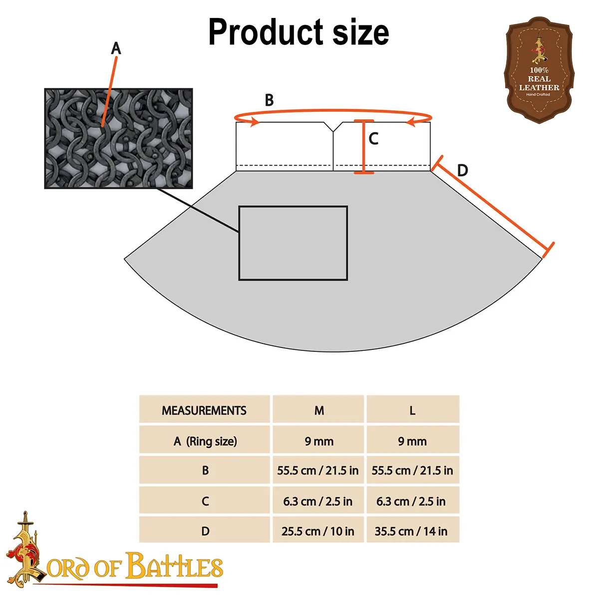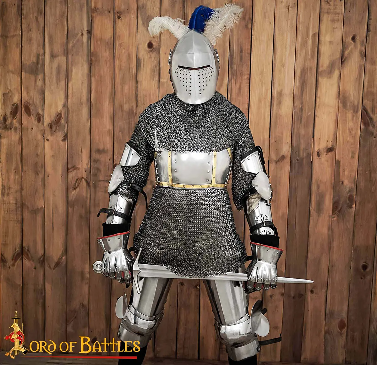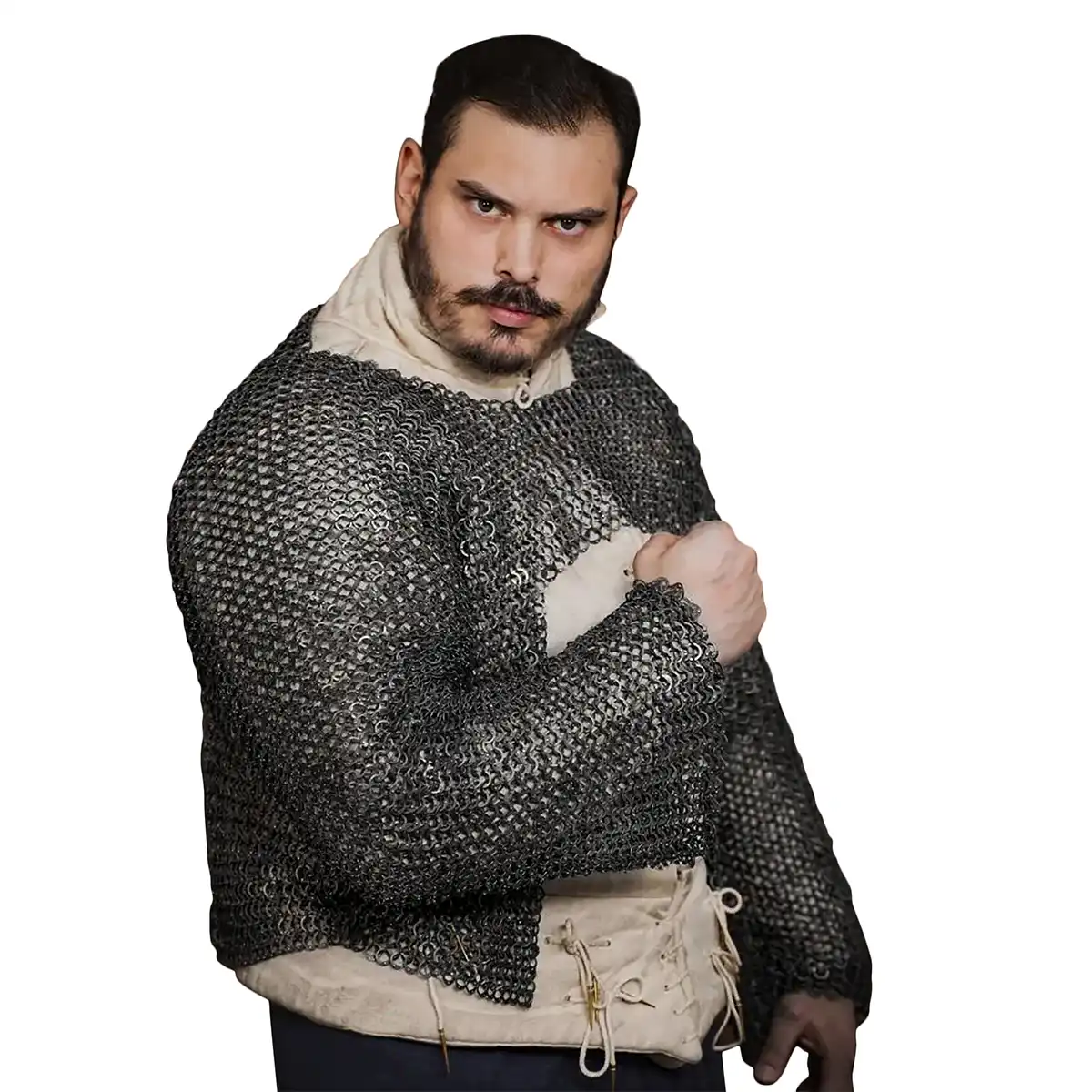 Note:Our chainmail is meticulously handcrafted, link by link, from thousands of interlinked rings, for exceptional historical accuracy, strength, and unmistakable artistry of traditional methods. As each piece is assembled by hand, you may occasionally notice a rivet that sits slightly proud, feels subtly looser than others, or even a missing ring. Such small variations are a natural hallmark of genuine, artisan-made mail, just as in the Middle Ages, and show the human care invested. Any adjustment, if needed, can be easily made using basic pliers and a spare ring.