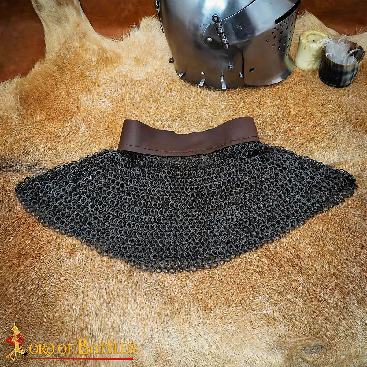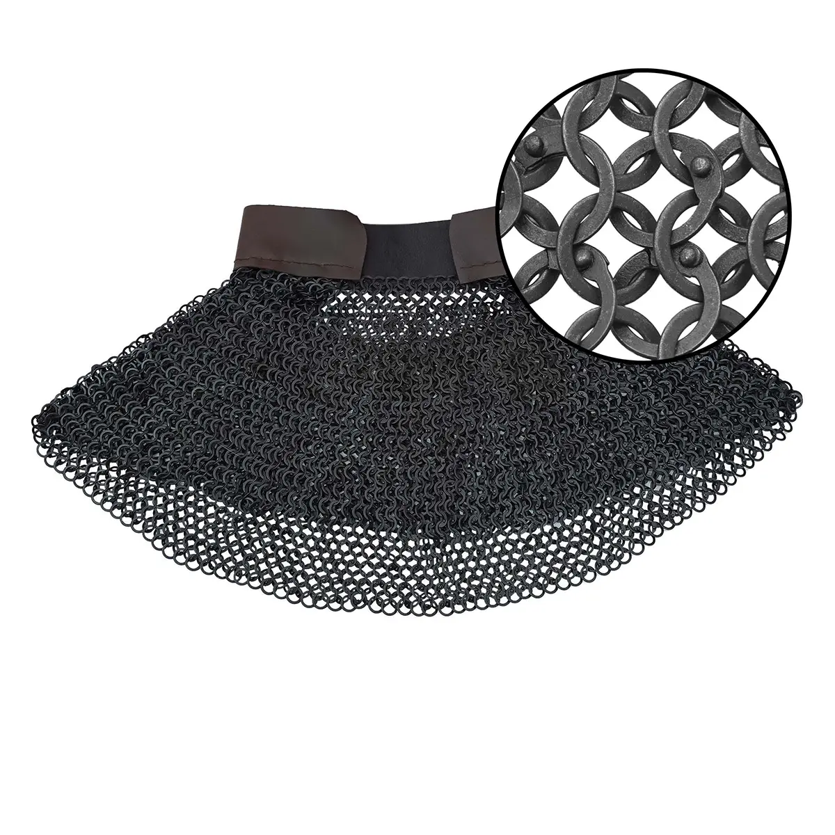Forged from 17 gauge mild steel, this aventail chainmail provides: