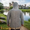 The full-sleeve chainmail shirt protects the torso and arms while giving full range of motion. The included chainmail coif gives head and neck coverage and can be worn alone or under helmets such as kettle hats.