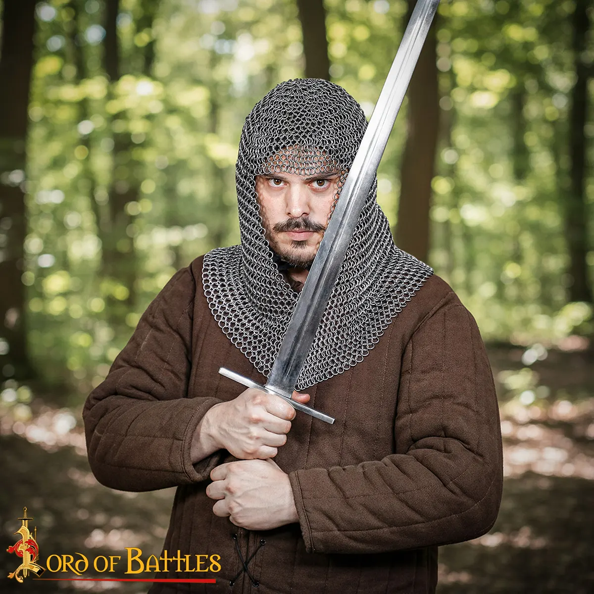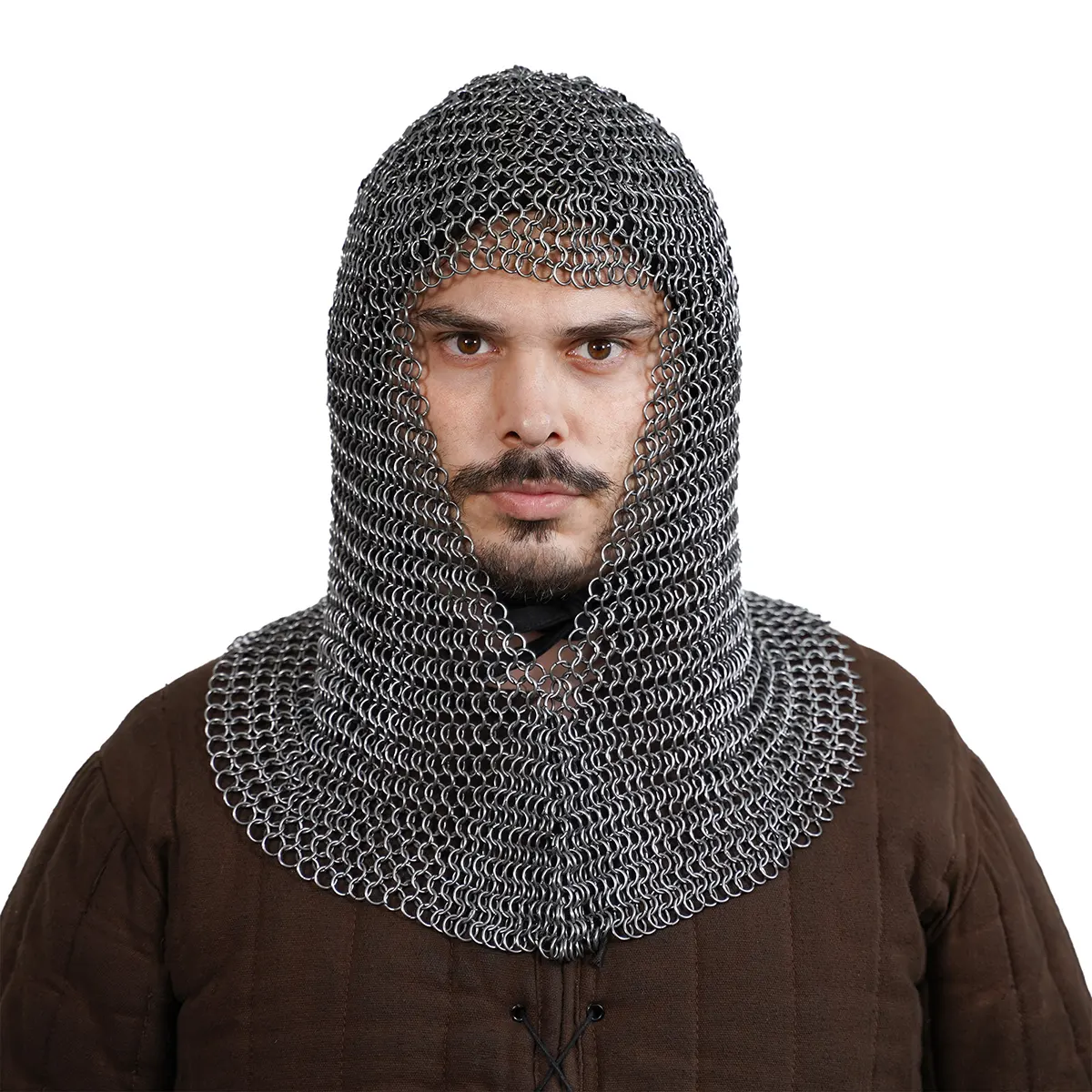 Covering your head, neck, and shoulders, this coif gives a solid layered defense also giving that bold medieval warrior look. The natural oiled finish helps keep the steel from rusting when not in use, making it both practical as well as long-lasting.