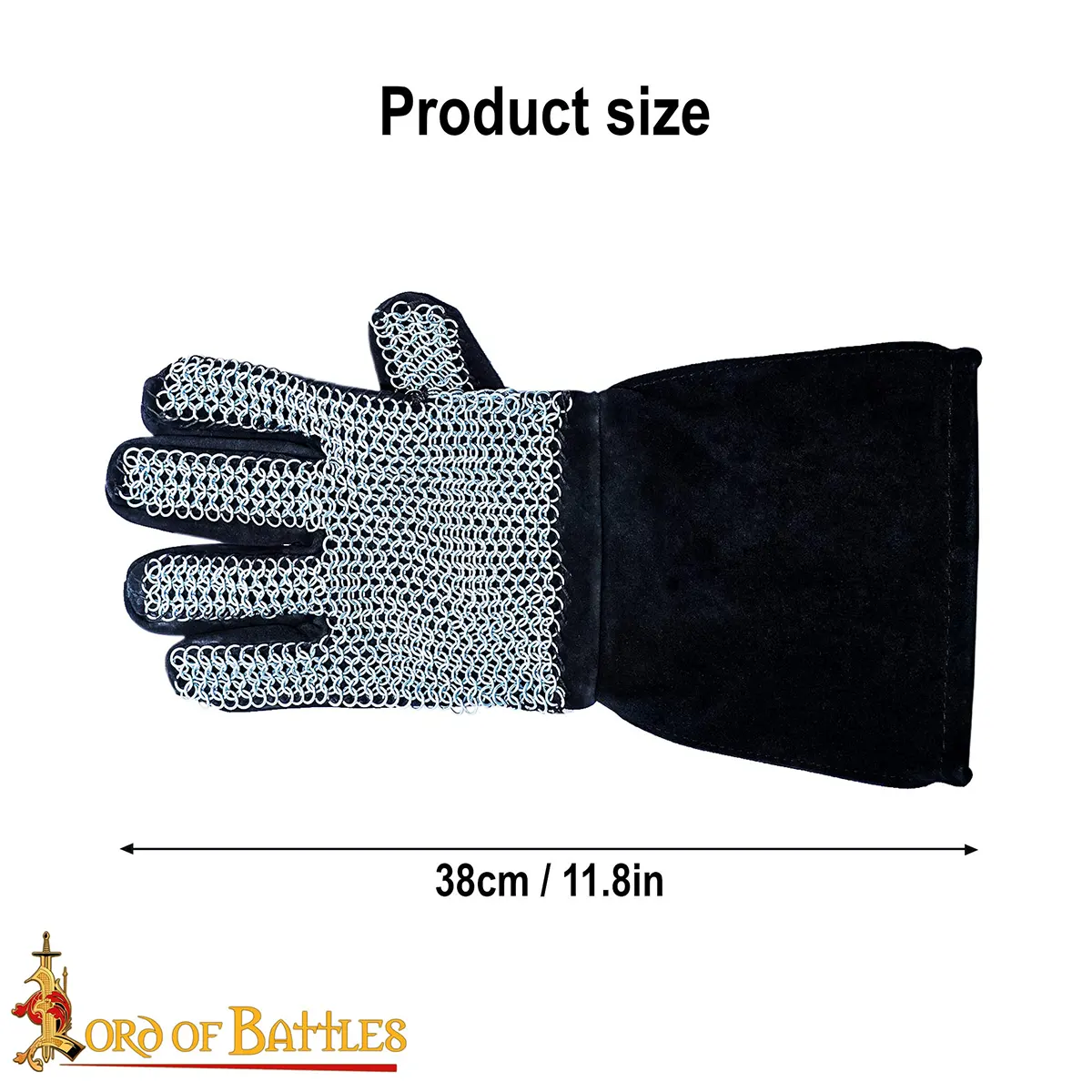 Historically, Medieval chainmail gloves were worn by soldiers and knights to protect the hands which are one of the most vulnerable areas in combat. Gloves like these were commonly used with swords, shields and polearms, for protection with dexterity. Variations of gloves chainmail were used across Europe from the early medieval period onwards.