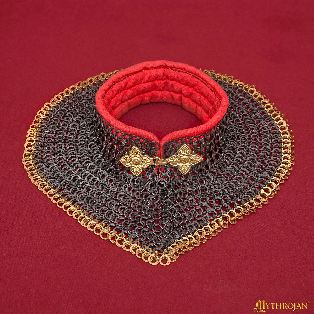 Every gorget is handmade by skilled artisans. Small variations in rivet setting, ring alignment, or brass finish highlight the authentic, handcrafted nature of medieval mail armor.