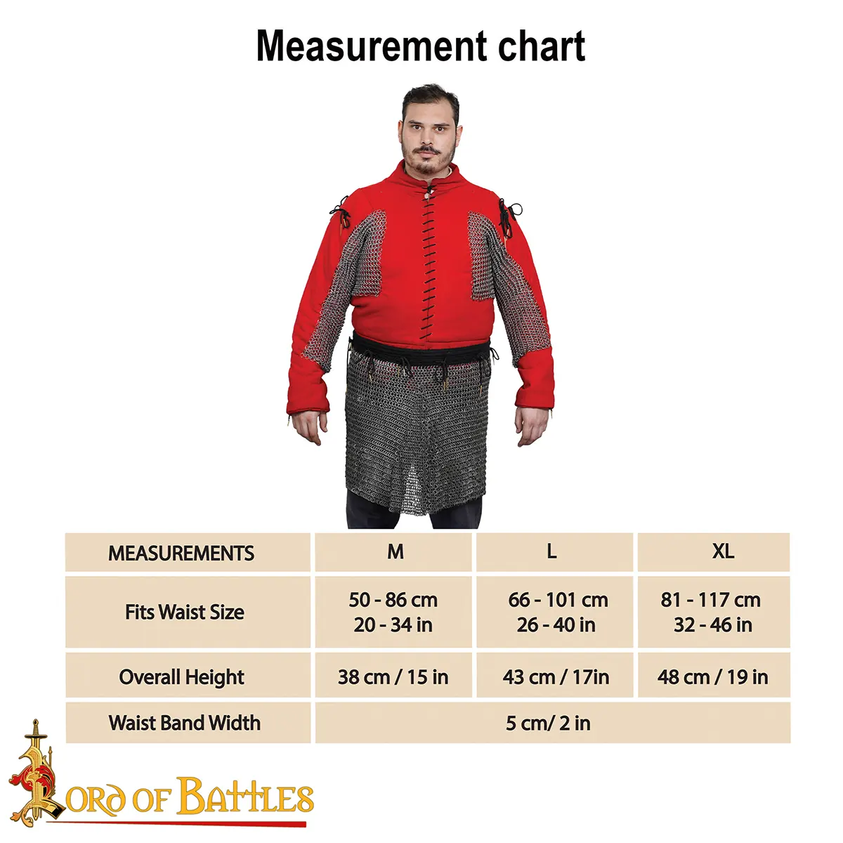 The split front design allows ease of walking, riding, and combat maneuvers, while the adjustable waistband with lacing ensures a secure and customizable fit. This versatile skirt can be worn under plate harnesses for layered defense or over padded garments for standalone protection.
