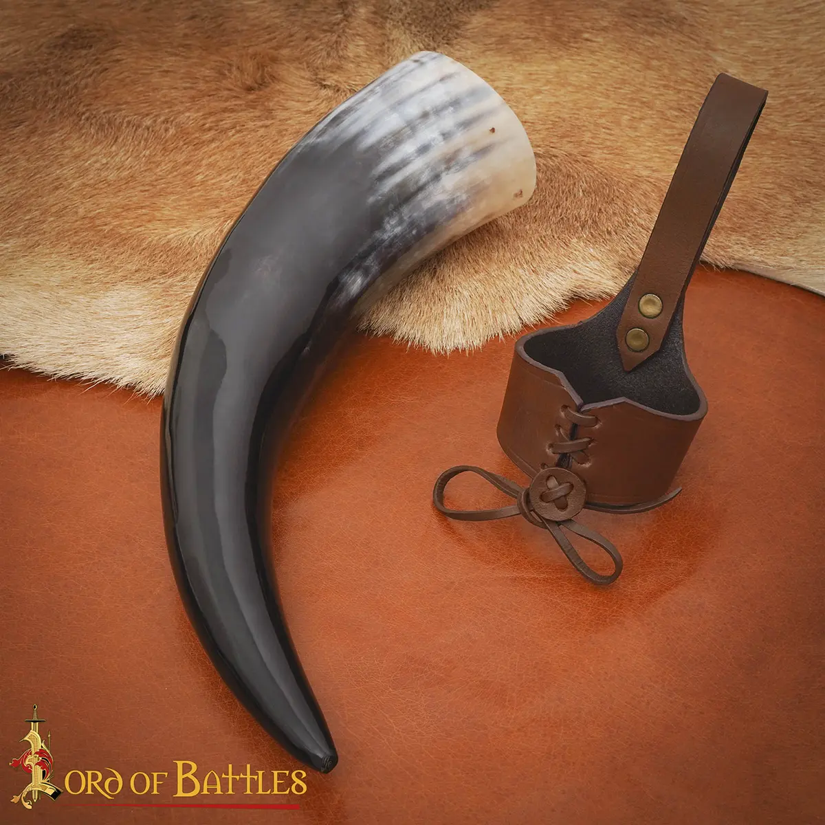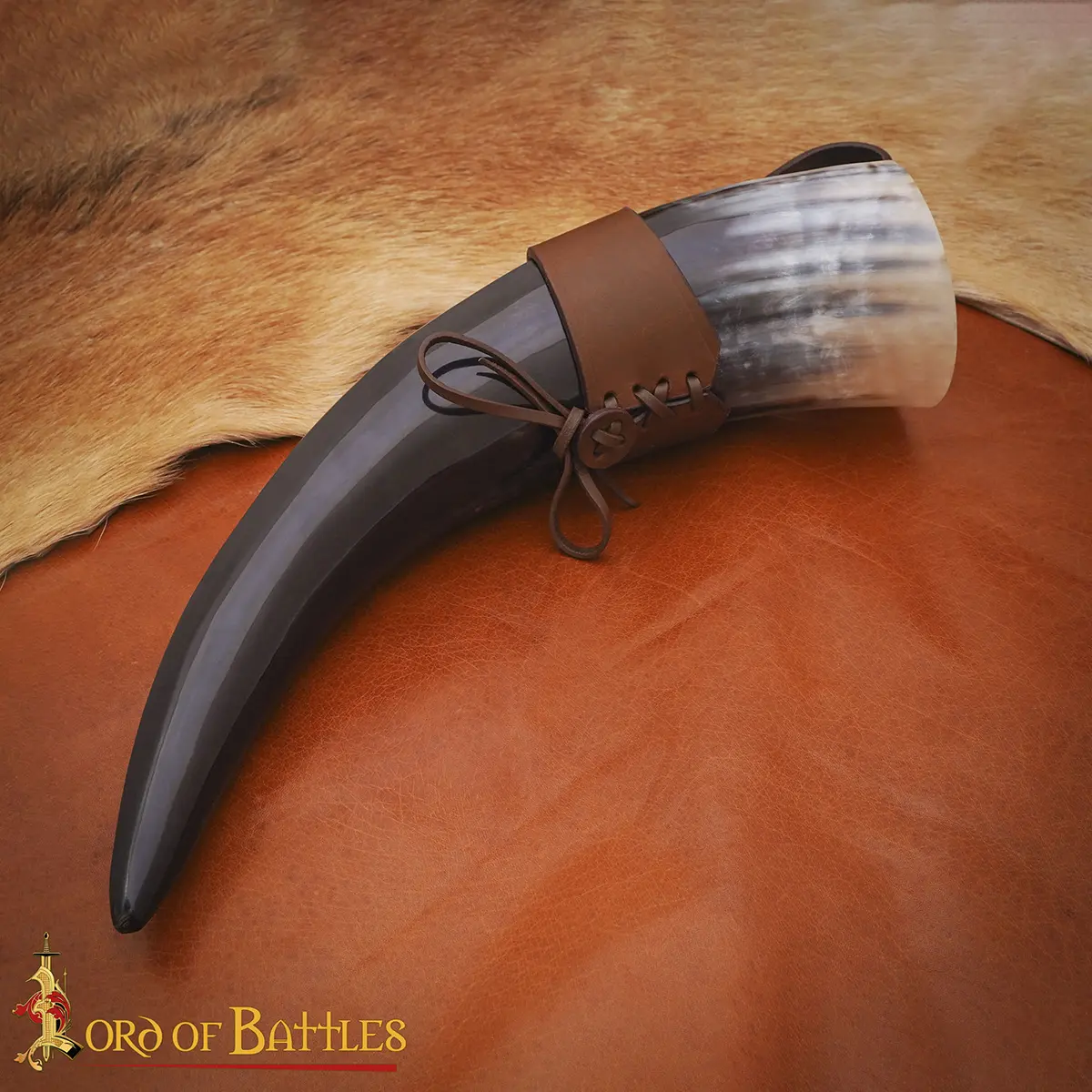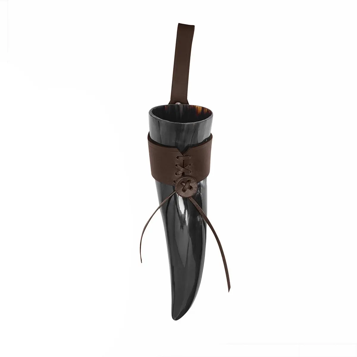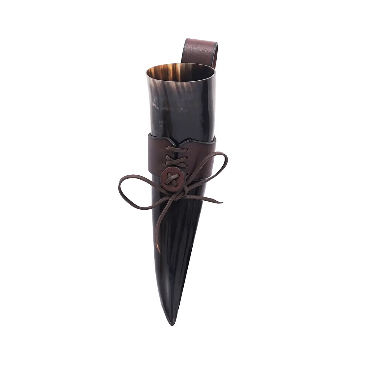 Materials: The drinking horn is paired with a durable 3–3.2 mm genuine leather holder, hand-stitched and tightened with a lace fastening for secure closure. The thick leather retains its shape, cradles the horn firmly, and gives you hands-free freedom as you move, feast, or celebrate.