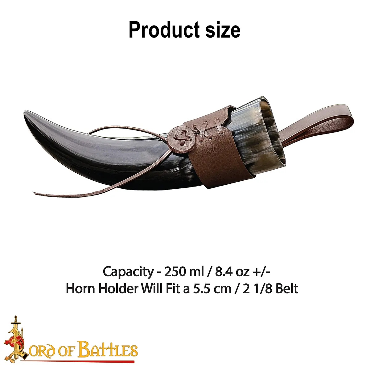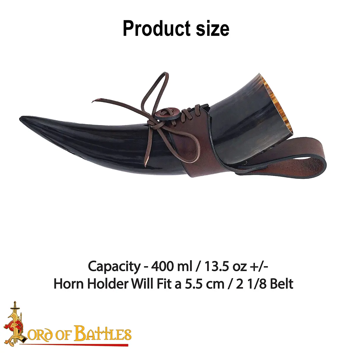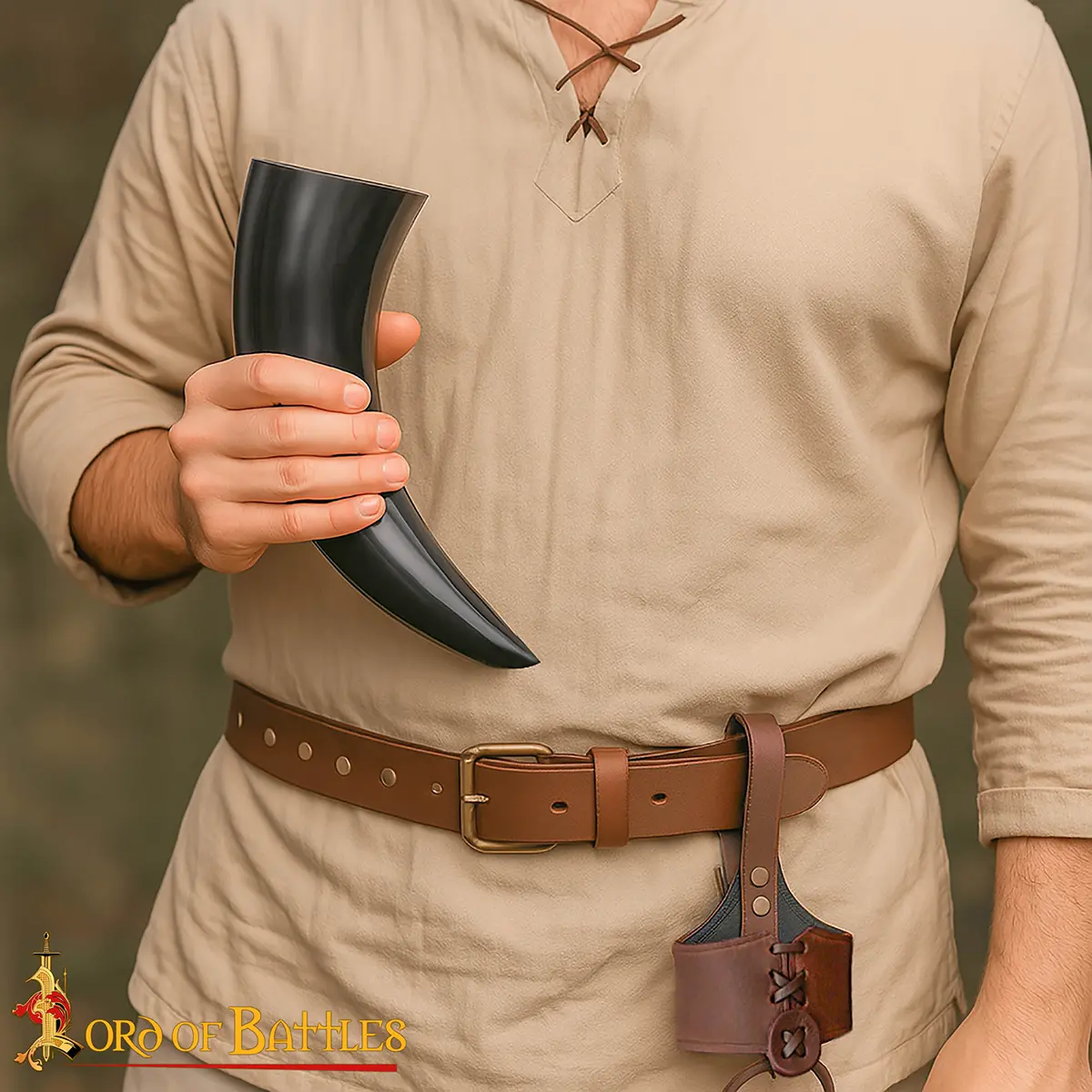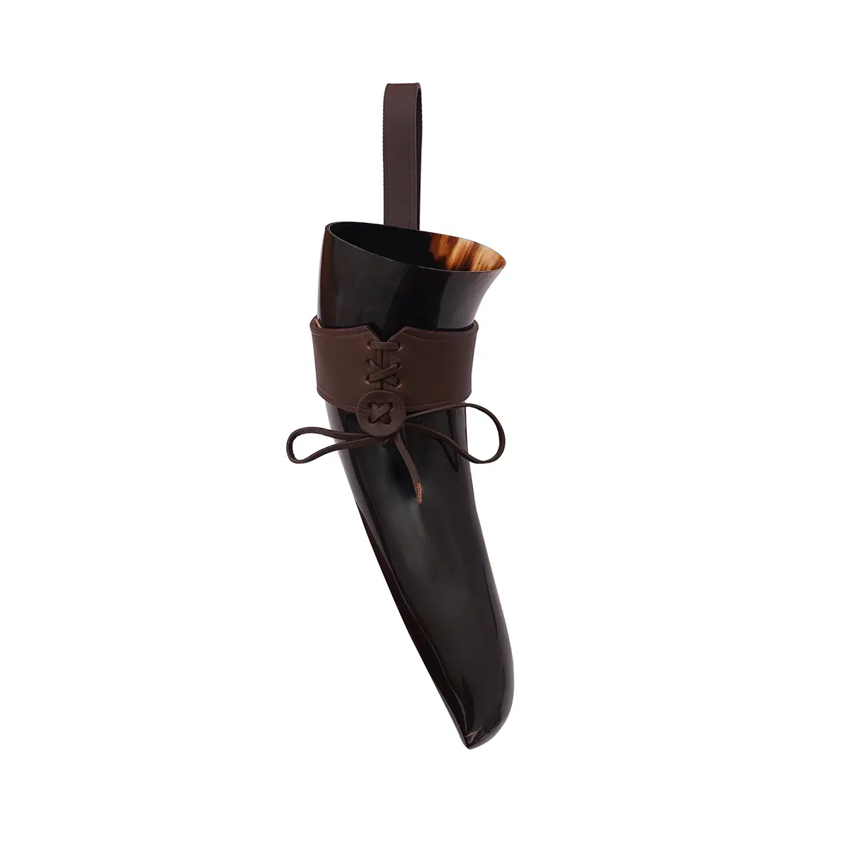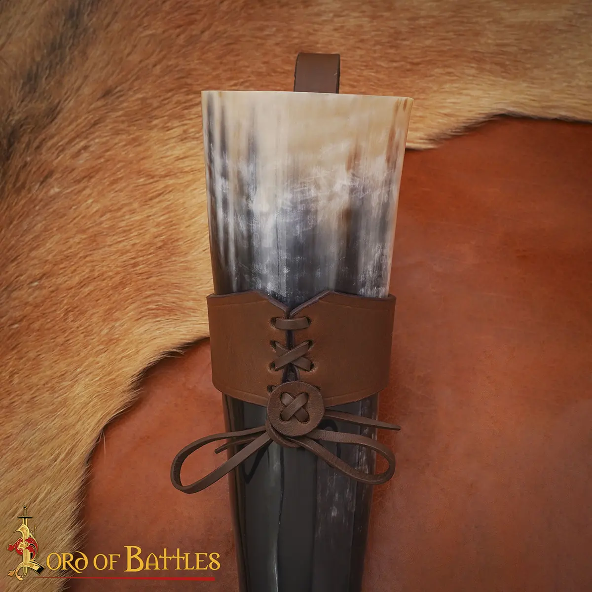 Materials: The drinking horn is paired with a durable 3–3.2 mm genuine leather holder, hand-stitched and tightened with a lace fastening for secure closure. The thick leather retains its shape, cradles the horn firmly, and gives you hands-free freedom as you move, feast, or celebrate.