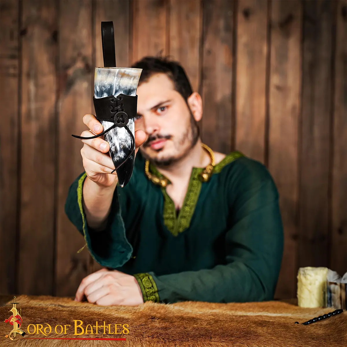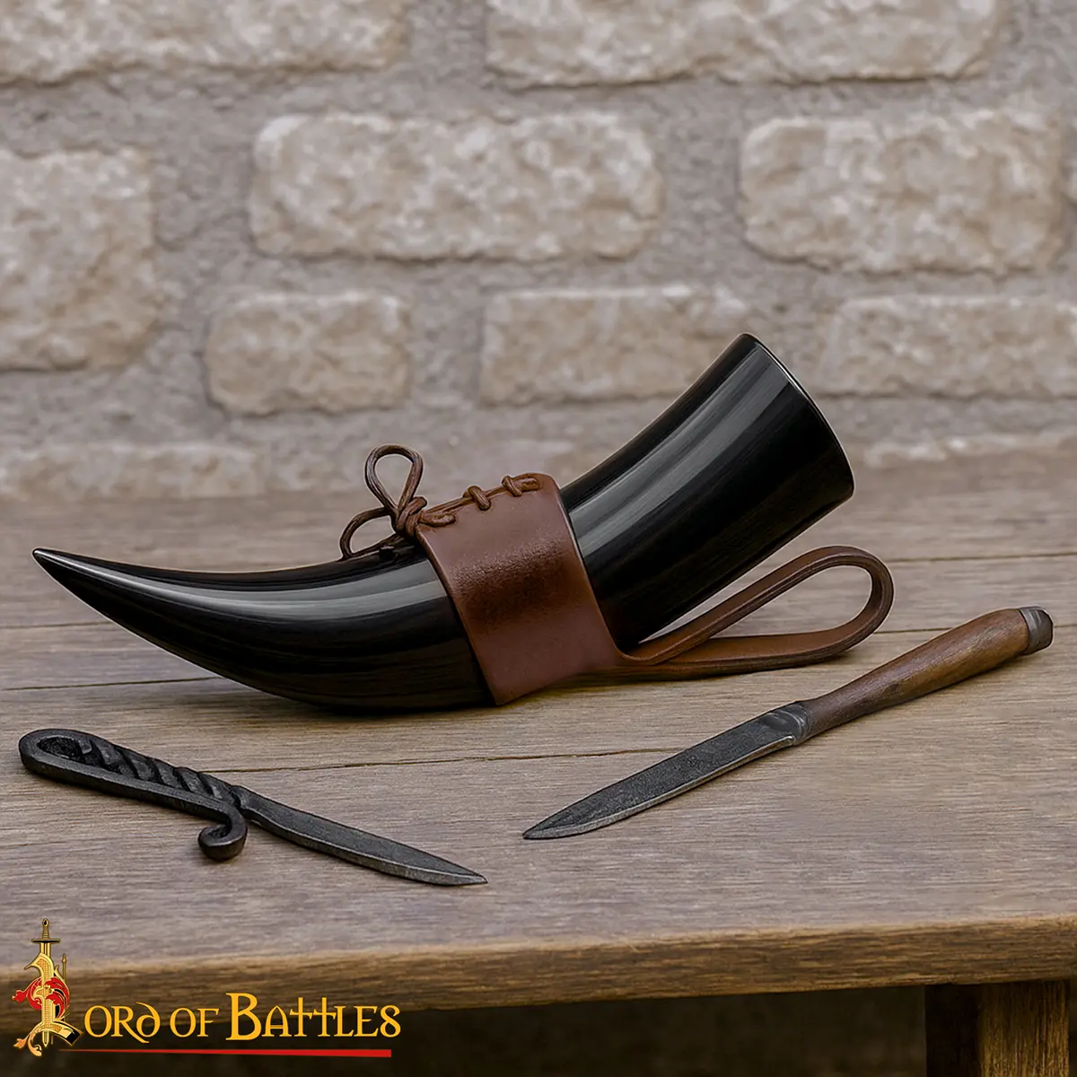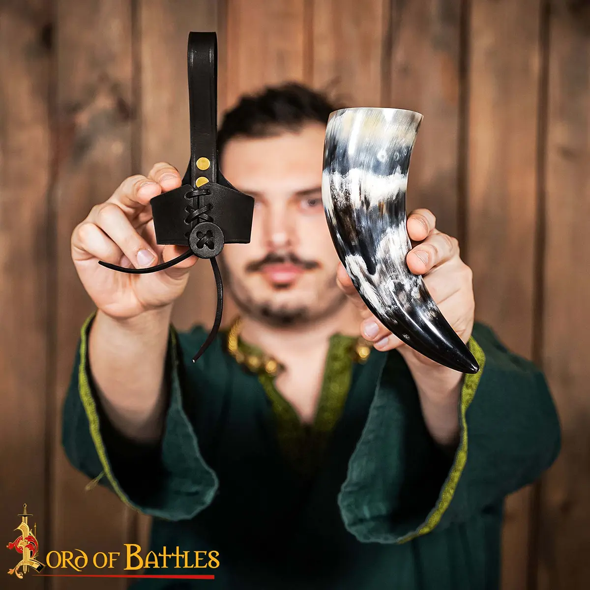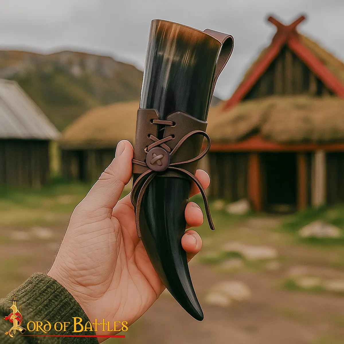 Materials: The drinking horn is paired with a durable 3–3.2 mm genuine leather holder, hand-stitched and tightened with a lace fastening for secure closure. The thick leather retains its shape, cradles the horn firmly, and gives you hands-free freedom as you move, feast, or celebrate.