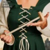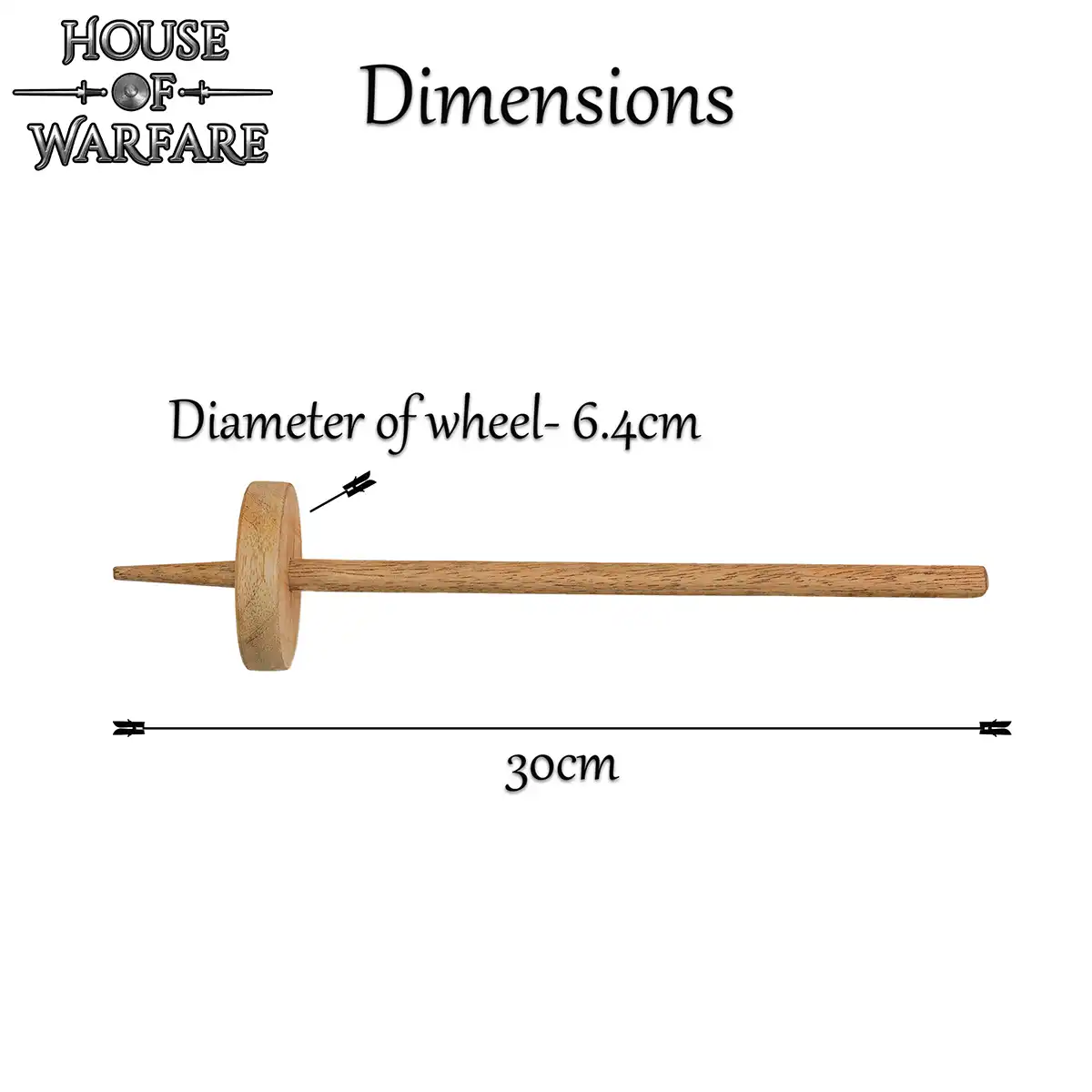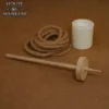 For thousands of years, people used hand spindles to create strands of yarn. This Reenactment Spindle looks right at home in many historical eras. Made of wood, this spindle comes in two parts. One part is the shaft while the other is the weight wheel. This spindle is a low-whorl spindle, meaning that the weight is at the bottom when spinning. On the shaft, there is a tapered end where the wheel, also known as a whorl, slides onto. Also there is a notch to secure the beginning of the strand of yarn, not included, to the spindle. This is often done with a half-hitch knot. This reenactment spindle does not have a finish, for a natural look. It is wonderful for historical reenactments, display, or prop use.