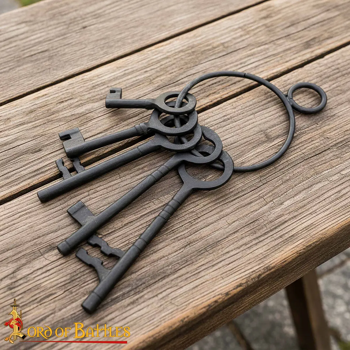 The medieval key set has a protective finish and does not rust easily, but basic care will help maintain its appearance: