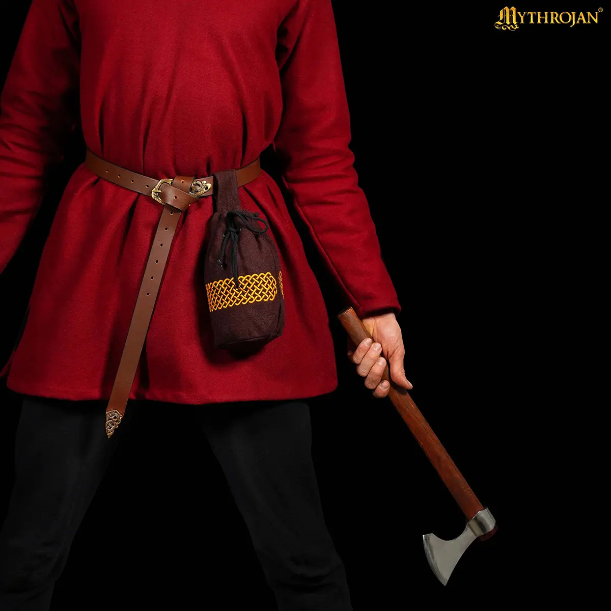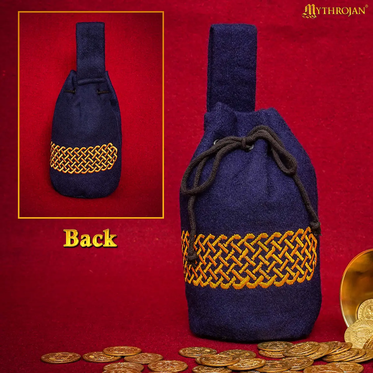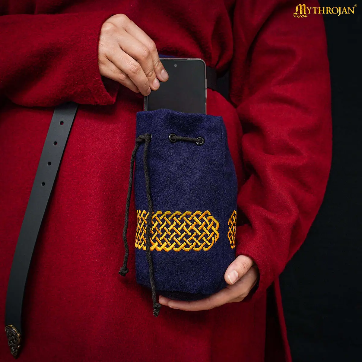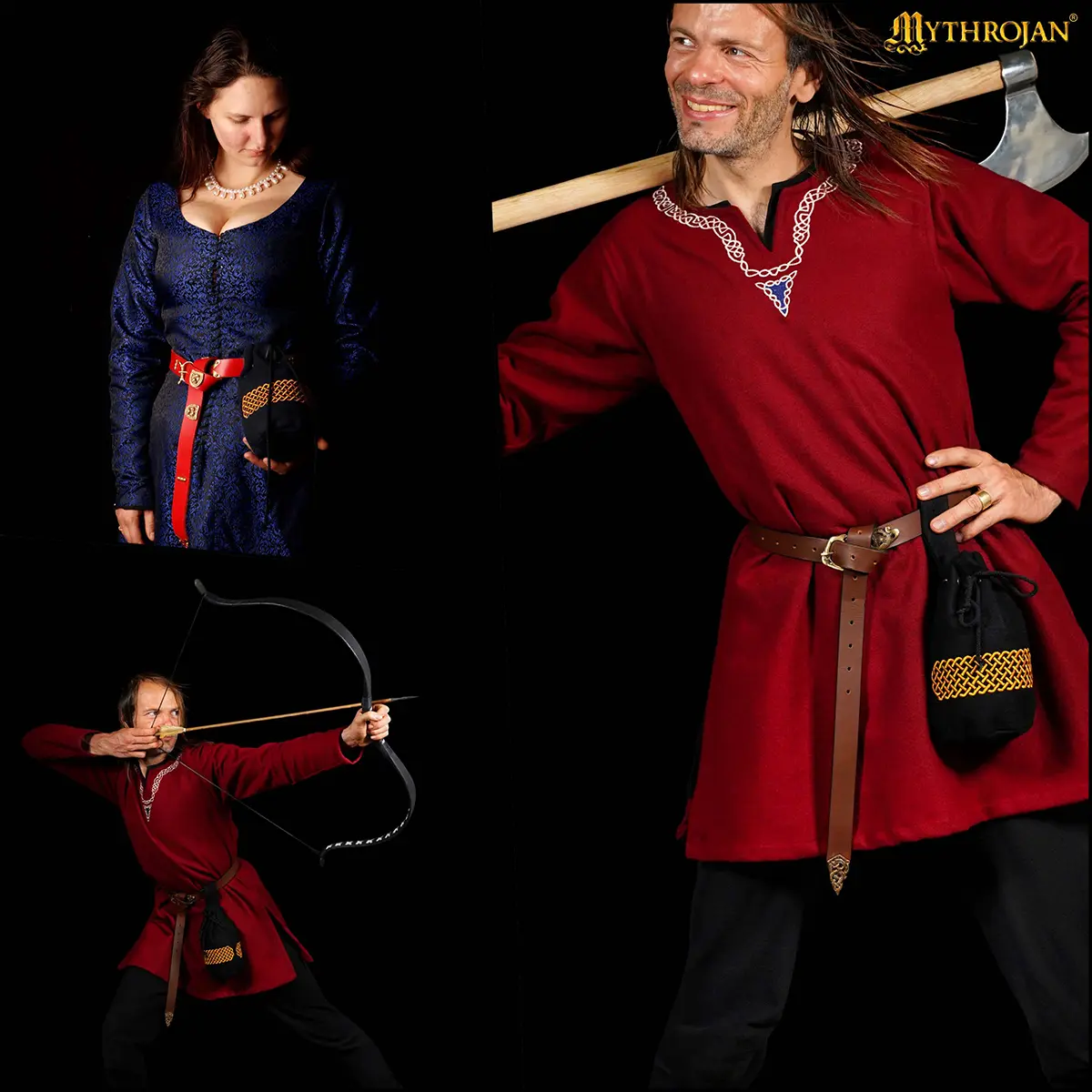 This handcrafted medieval belt pouch is made from a 70% wool blend and adorned with elegant golden embroidery. More than just a bag, this pouch is designed to reflect the artistry and practicality of medieval craftsmanship, for both style and reliable functionality.