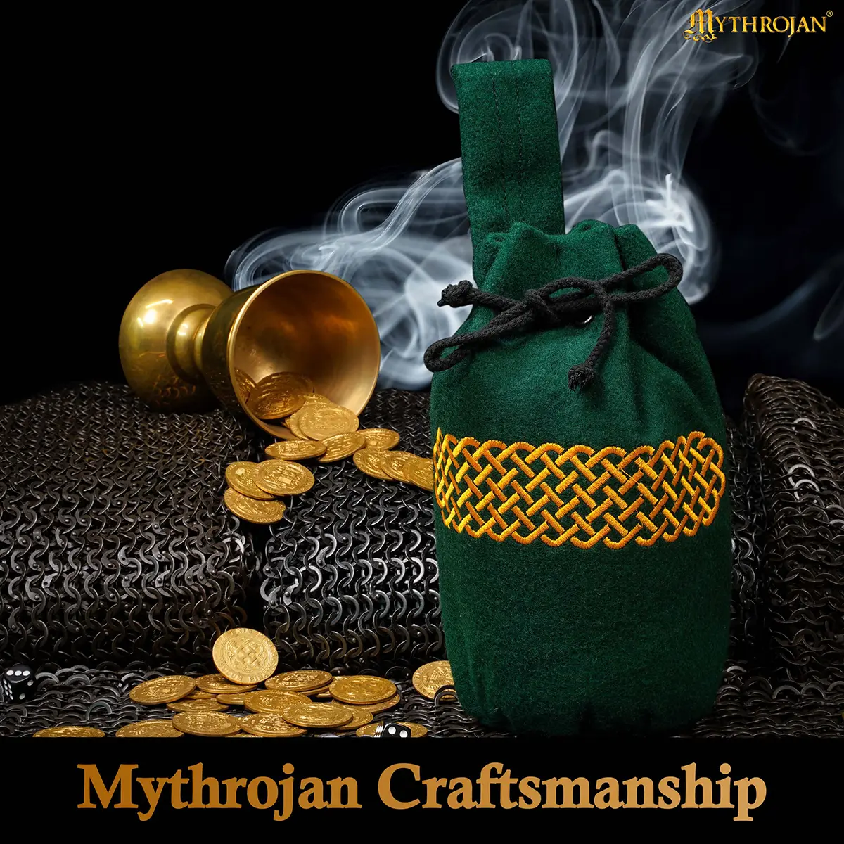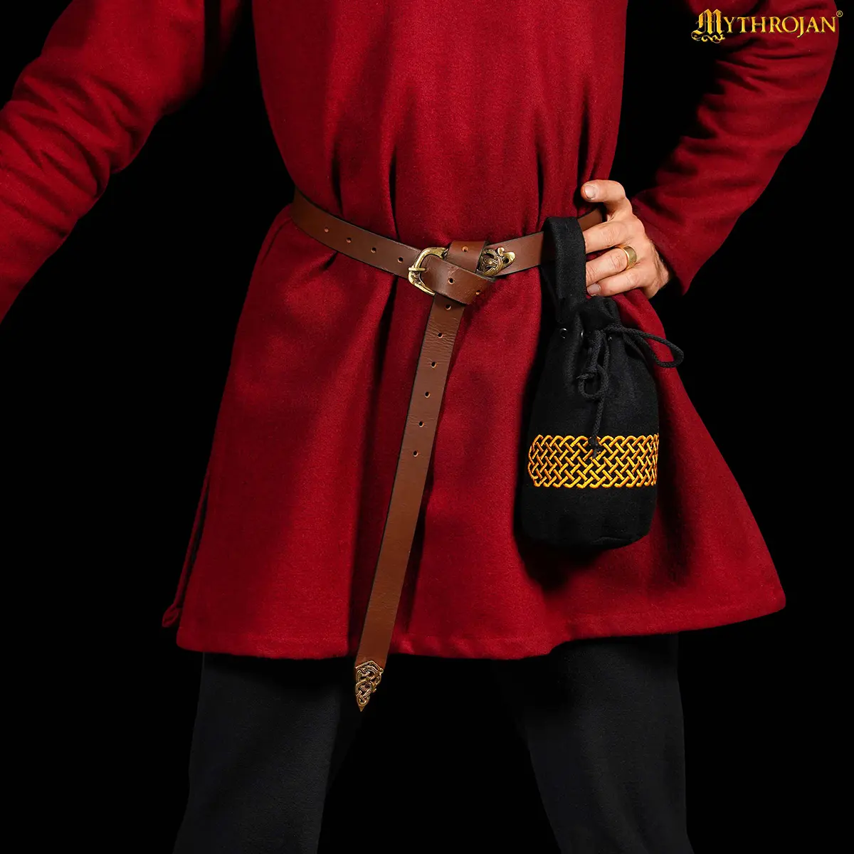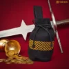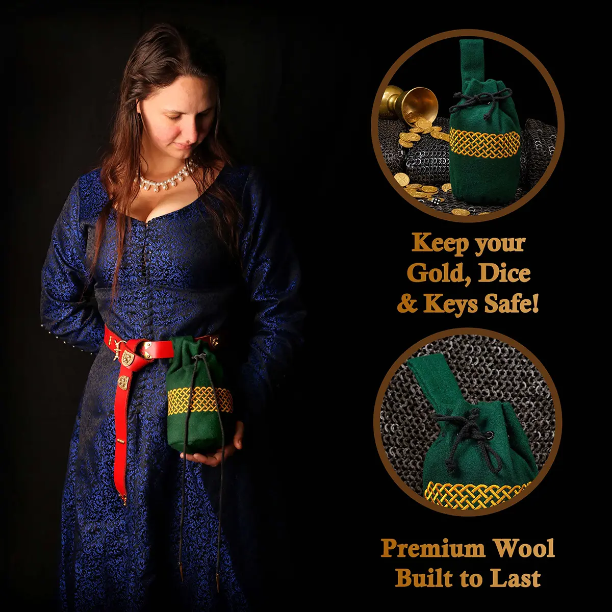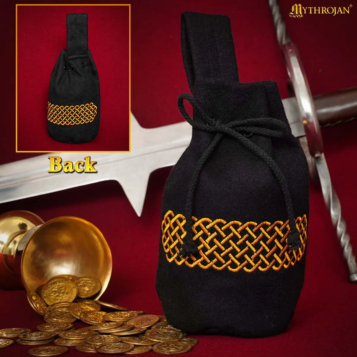This handcrafted medieval belt pouch is made from a 70% wool blend and adorned with elegant golden embroidery. More than just a bag, this pouch is designed to reflect the artistry and practicality of medieval craftsmanship, for both style and reliable functionality.