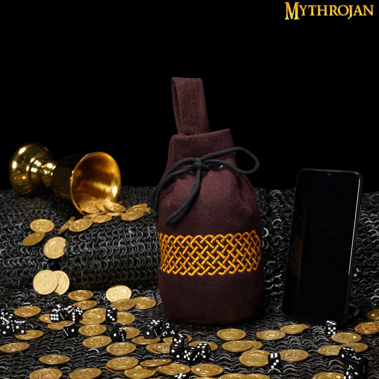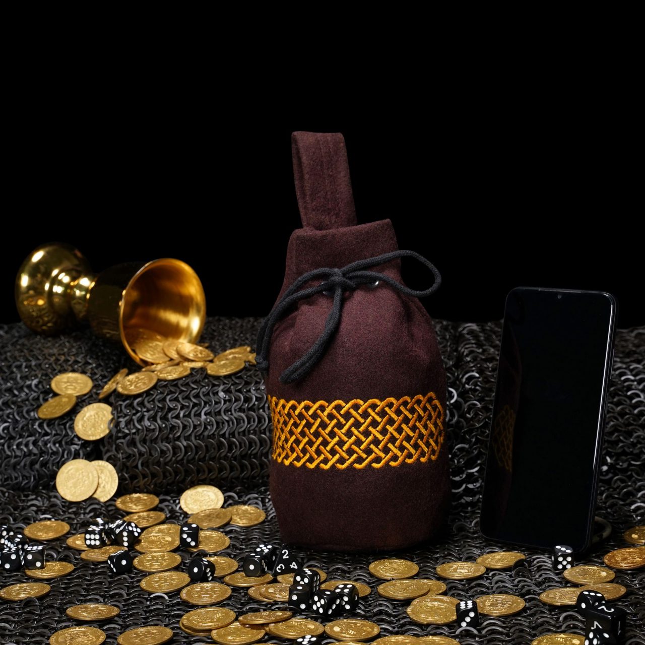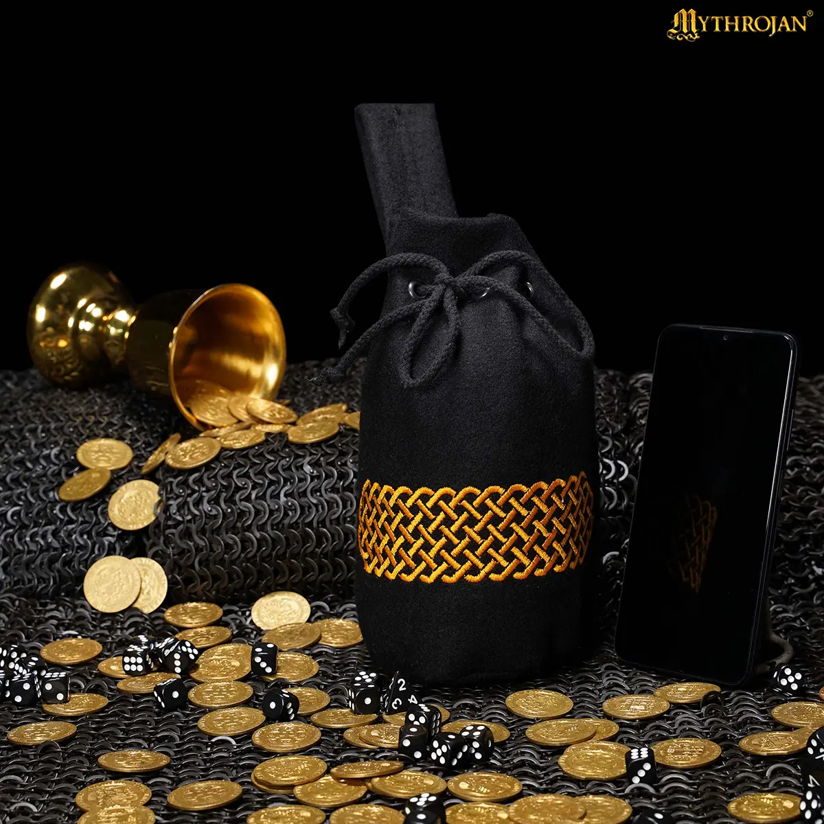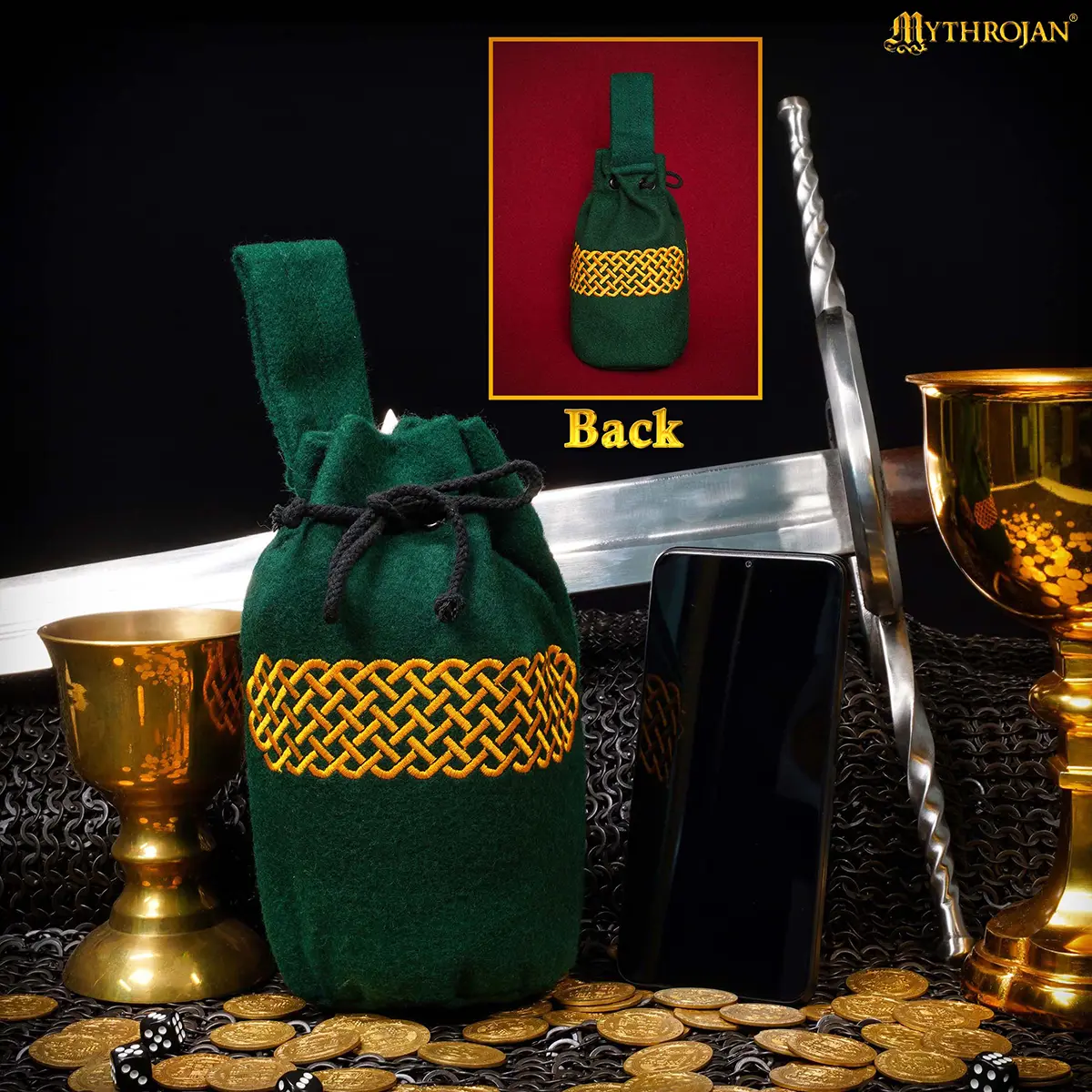 This handcrafted medieval belt pouch is made from a 70% wool blend and adorned with elegant golden embroidery. More than just a bag, this pouch is designed to reflect the artistry and practicality of medieval craftsmanship, for both style and reliable functionality.