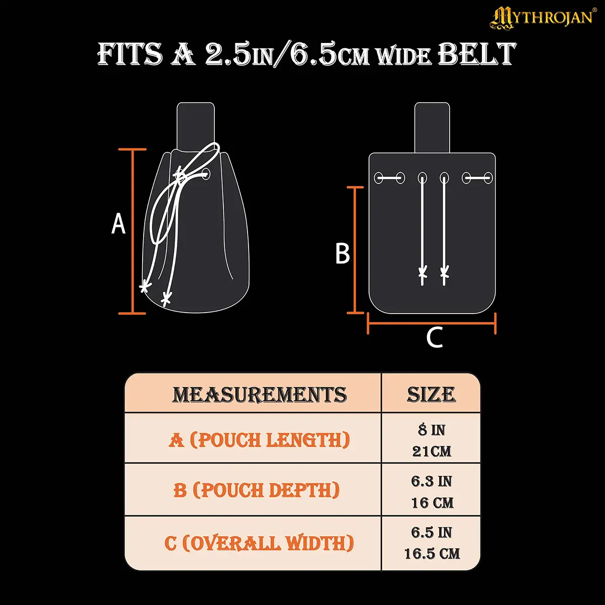 Though compact on the belt, the pouch is spacious, with enough room to carry coins, dice, cards, keys, or even small personal items. The drawstrings provide a snug closure, ensuring your belongings remain safe and secure during travel, fairs, or lively reenactments.