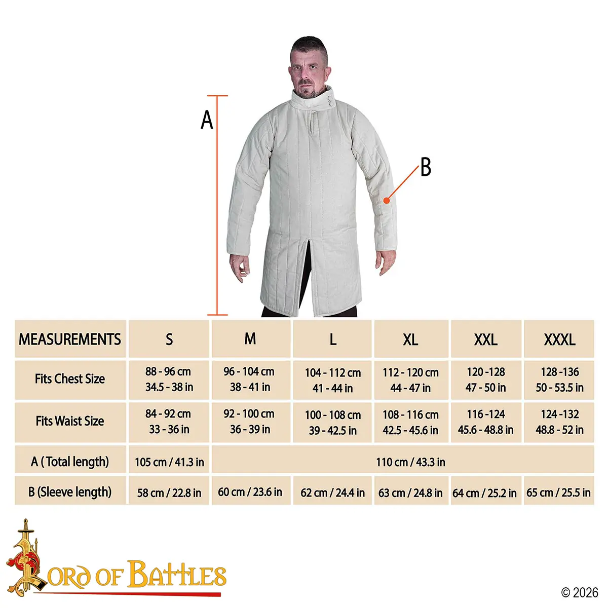 Triple-Layer Construction for Reliable Protection: This Medieval gambeson is built with three strong layers: a durable cotton outer shell, thick internal padding and a soft inner lining.