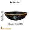This horn bowl is handcrafted from genuine horn with a depth of 5cm and a diameter of 15.1cm. The structure features a solid brass rim on the top.