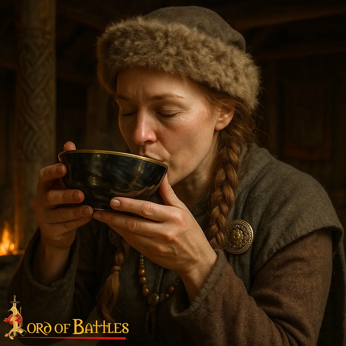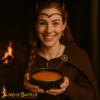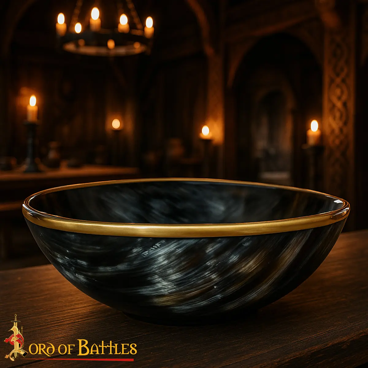 This horn bowl with a bold brass rim captures the essence of ancient feasts and epic tales. With each encounter, you’re drawn into the sagas of old, tasting the echoes of battles won and kinship forged.
