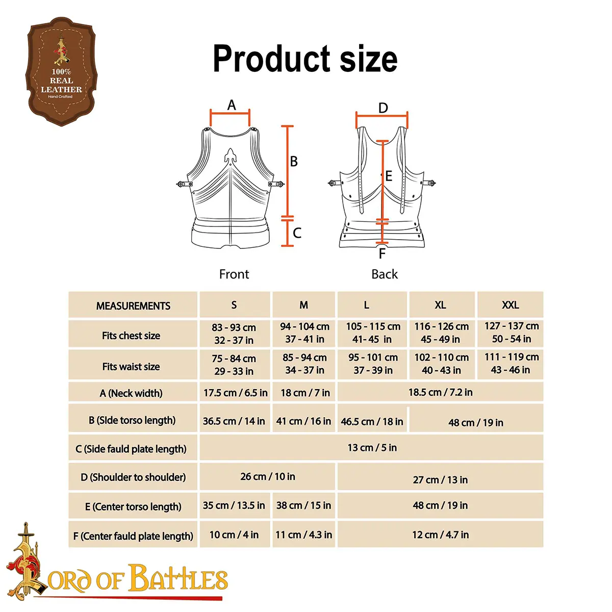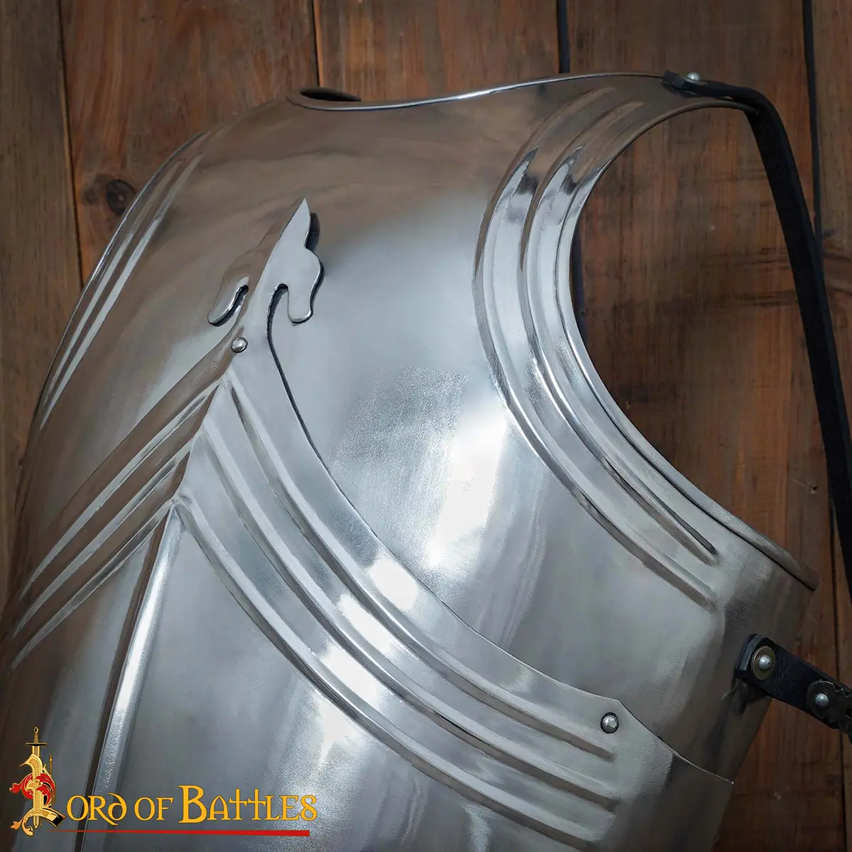 Each breastplate is hand-forged and finished by skilled armourers. Minor variations in shaping, fluting depth, and polish are natural results of traditional methods.