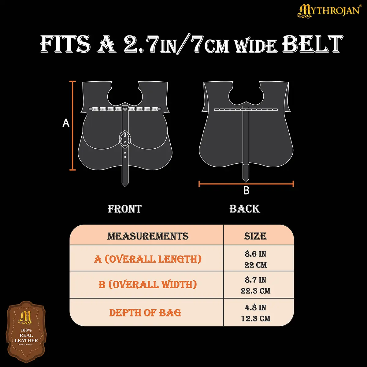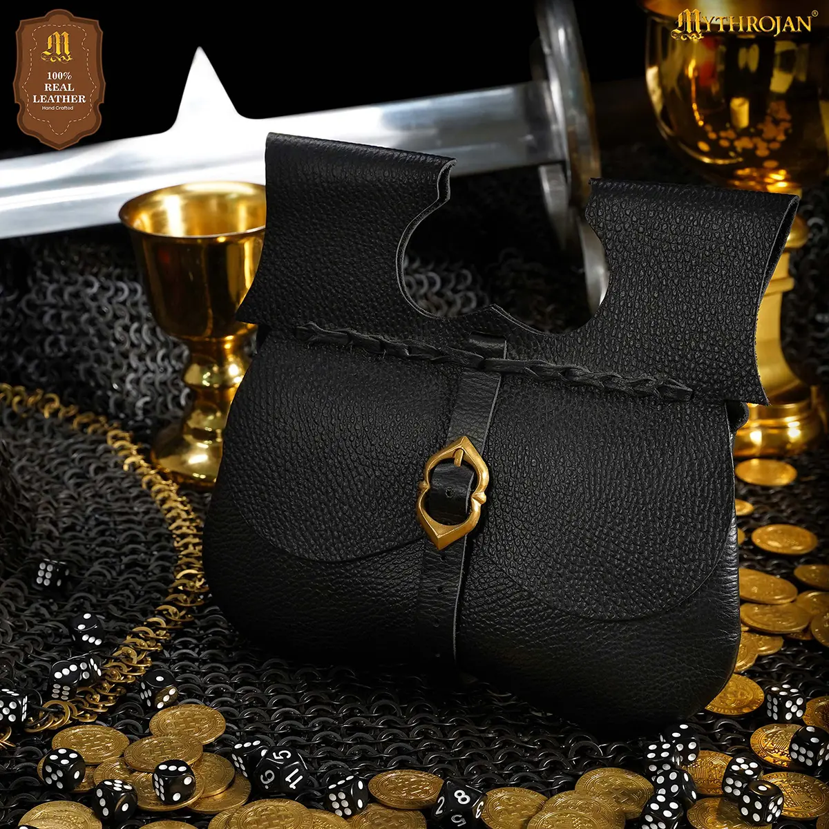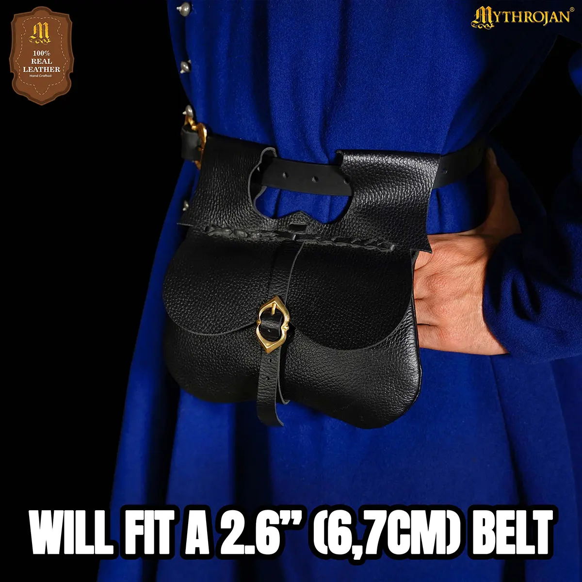 Crafted from genuine leather with a thickness of approx 1.4 – 1.6 mm, this medieval belt pouch mixes strength with flexibility for comfortable wear. The dual belt loops at the back are attached to fit belts up to 7 cm (2.75 in) wide, for stability during movement in events, or fairs.Â