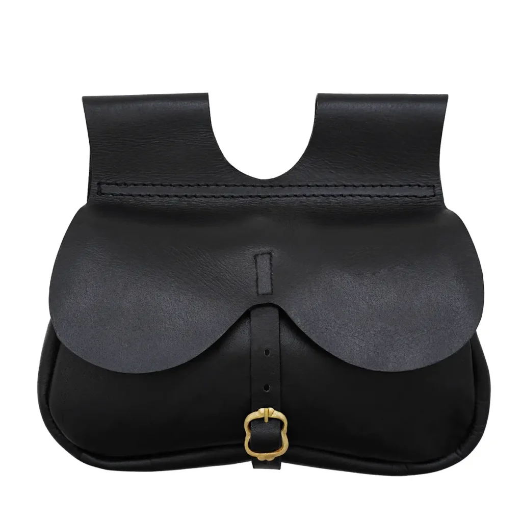 This Leather Belt Pouch mirrors the practical yet elegant designs carried by merchants, travelers, and craftsmen in the late Middle Ages. Constructed from 3 mm thick leather, it maintains shape and strength over years of use. The antique brass swing clasp secures contents while lending an authentic period aesthetic. Brass rivets strengthen all stress points, ensuring this pouch is ready for rugged wear.