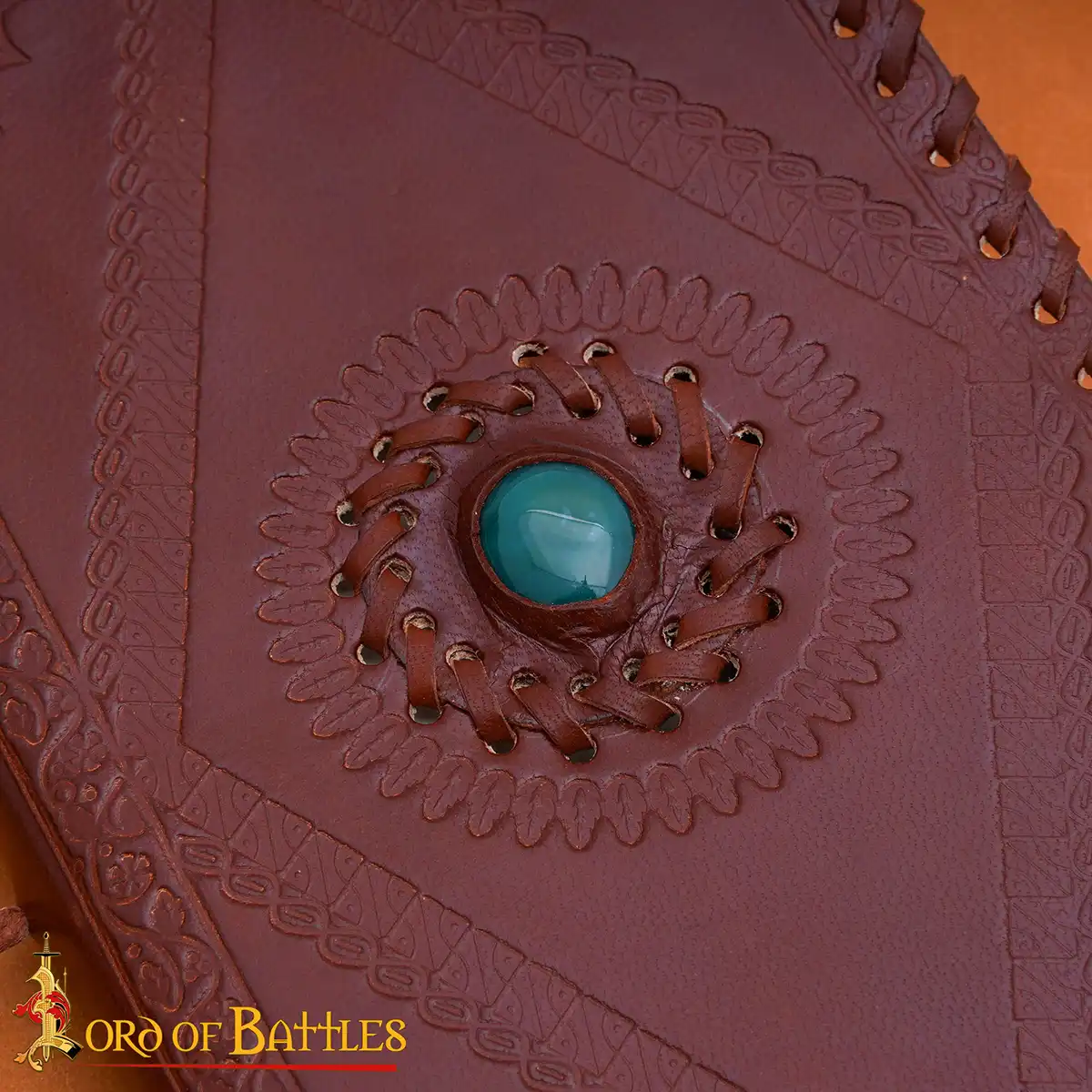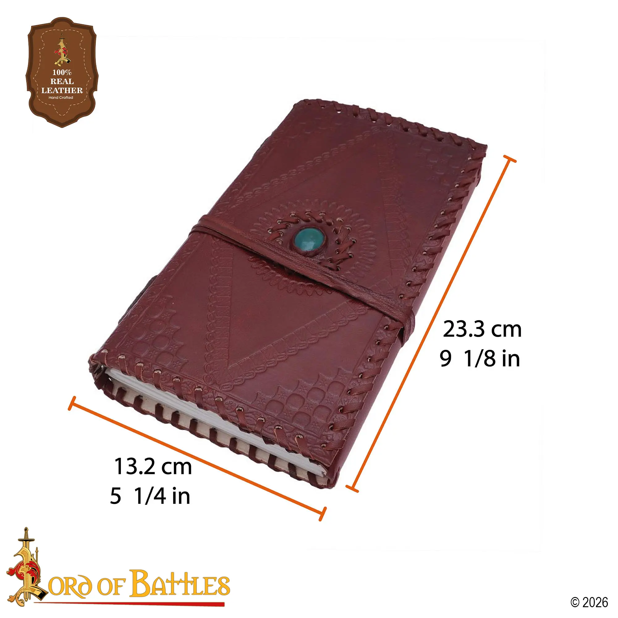 Handcrafted from genuine leather, this journal radiates an old-world charm that shows the artistry of medieval scribes. Each cover is skillfully embossed and embellished with a real green stone, making every piece unique and personal.
