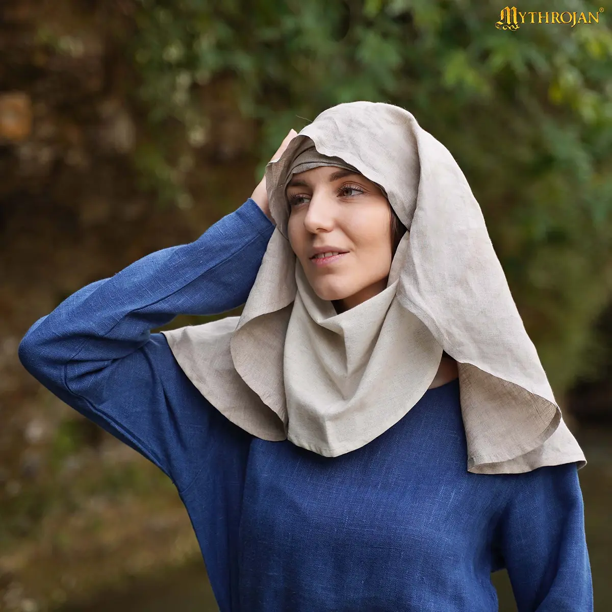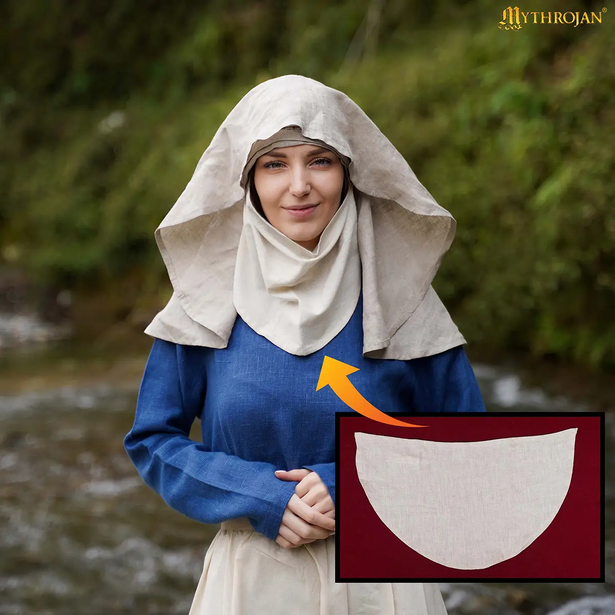 Rediscover the subtle elegance of medieval headwear with this Medieval Linen Half-Moon Wimple, carefully crafted from 100% natural linen or the Cotton-Linen Blend (87% Cotton, 13% Linen). Inspired by period references from the 12th to 15th centuries, this garment can be styled as a small veil or a chin-covering wimple, a practical accessory for any medieval ensemble.