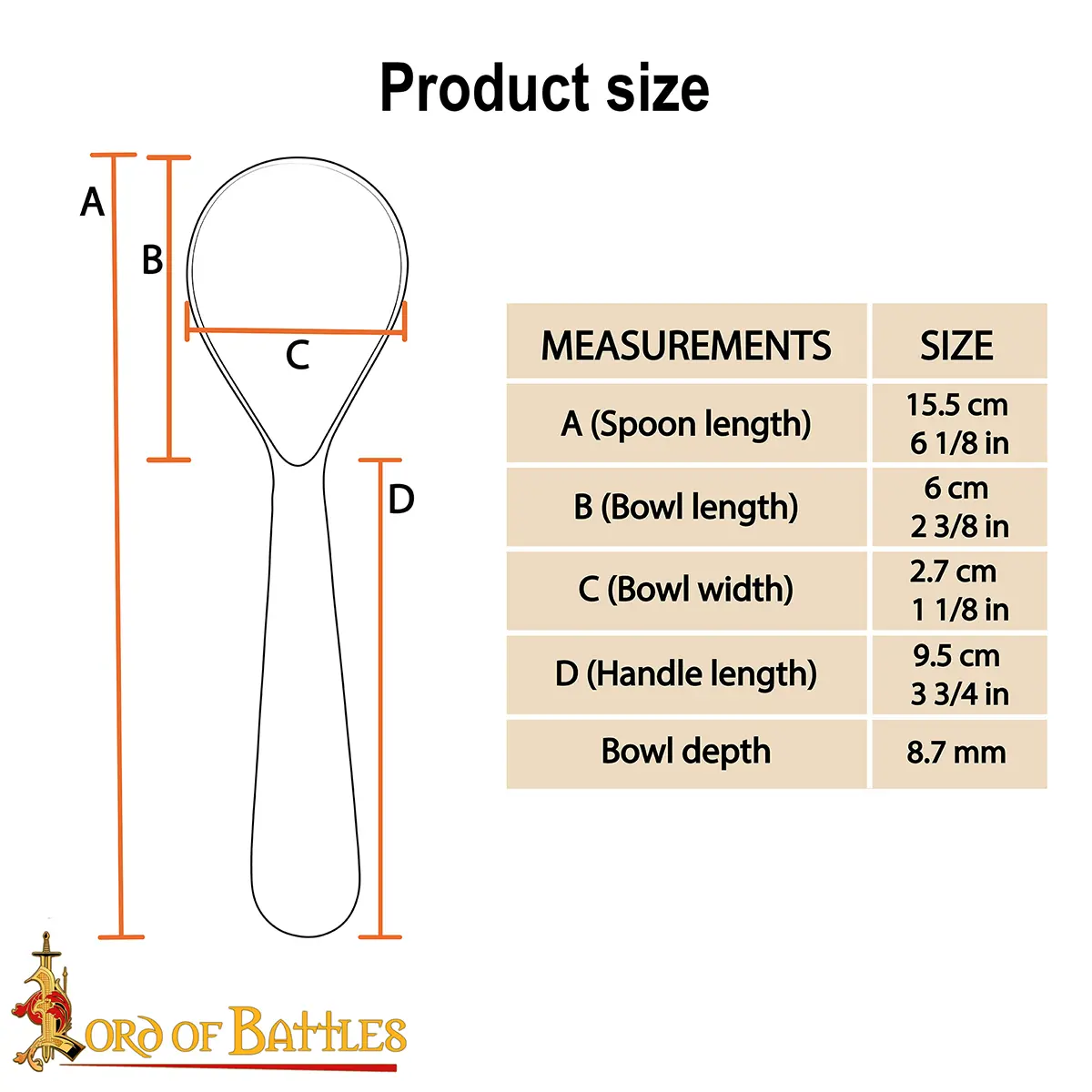 The curved bowl is great for enjoying soups, stews or porridge and the contoured handle helps in a secure grip. The spoon retains the true look of historical eating utensils which were once found in Viking, Saxon, and European households. Such spoons were common across Norse settlements between the 9th and 11th centuries, because of their practicality and simplicity.