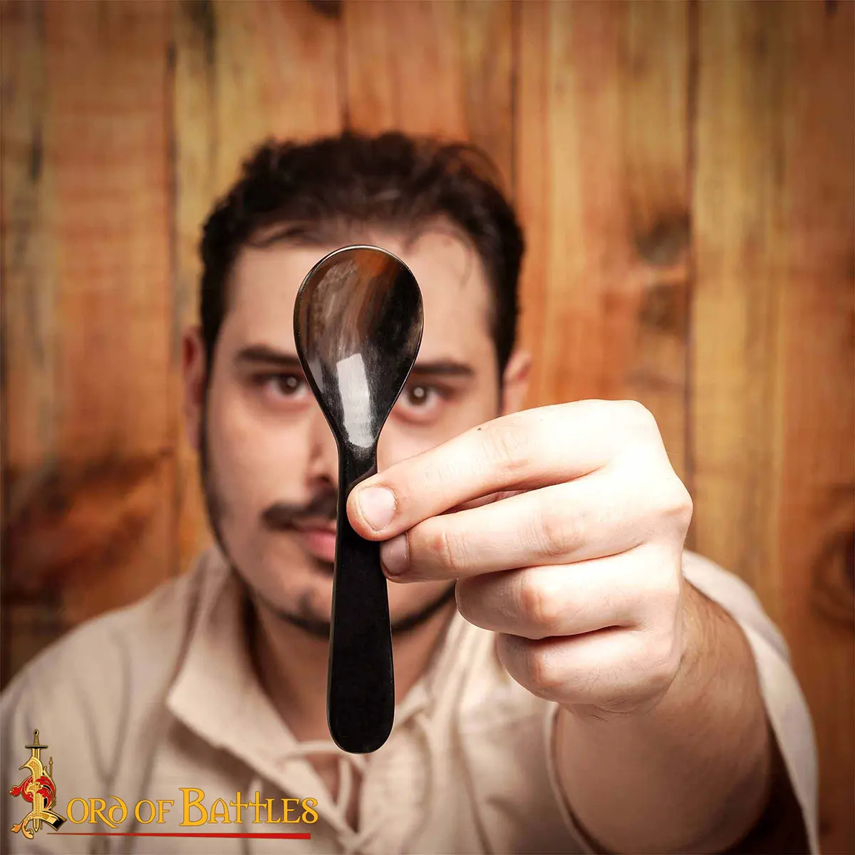 Bring rustic authenticity to your kitchen and dining table with this handcrafted Ox Horn Spoon, which shows the true utensils of early medieval kitchens. Crafted by hand and polished, it shows the pattern of genuine ox horn, for a visual appeal and a comfortable dining experience.