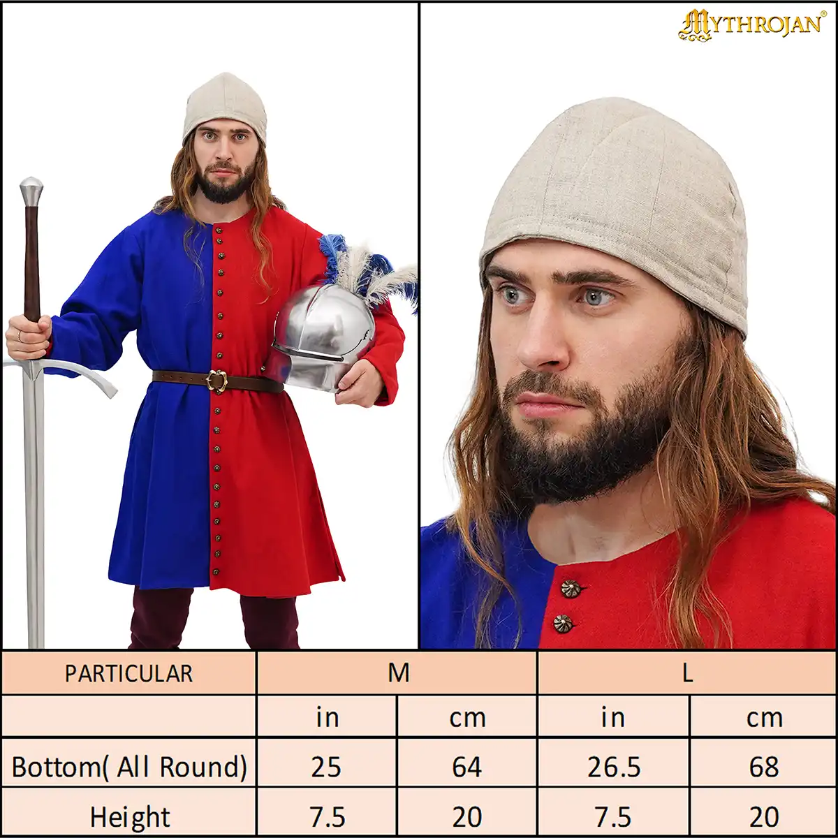 Experience the Middle Ages with this handcrafted padded arming coif , an essential piece of historical clothing for anyone portraying a medieval warrior, soldier, or knight. Carefully made from 100% natural linen (220 gsm), it offers a perfect balance between breath ability, durability, and comfort.