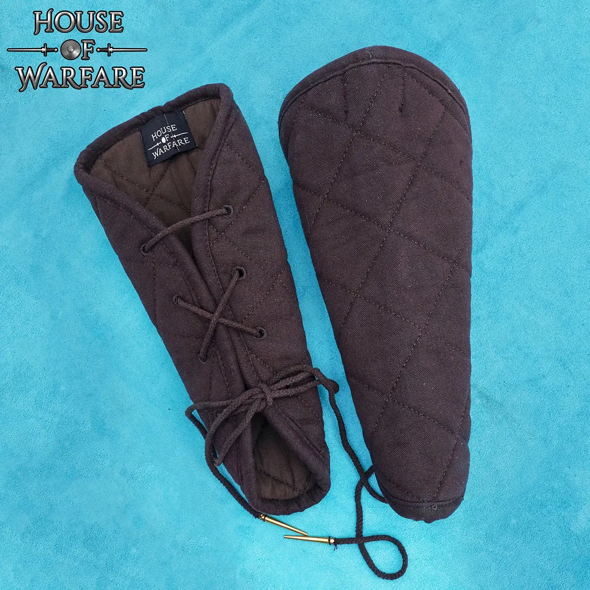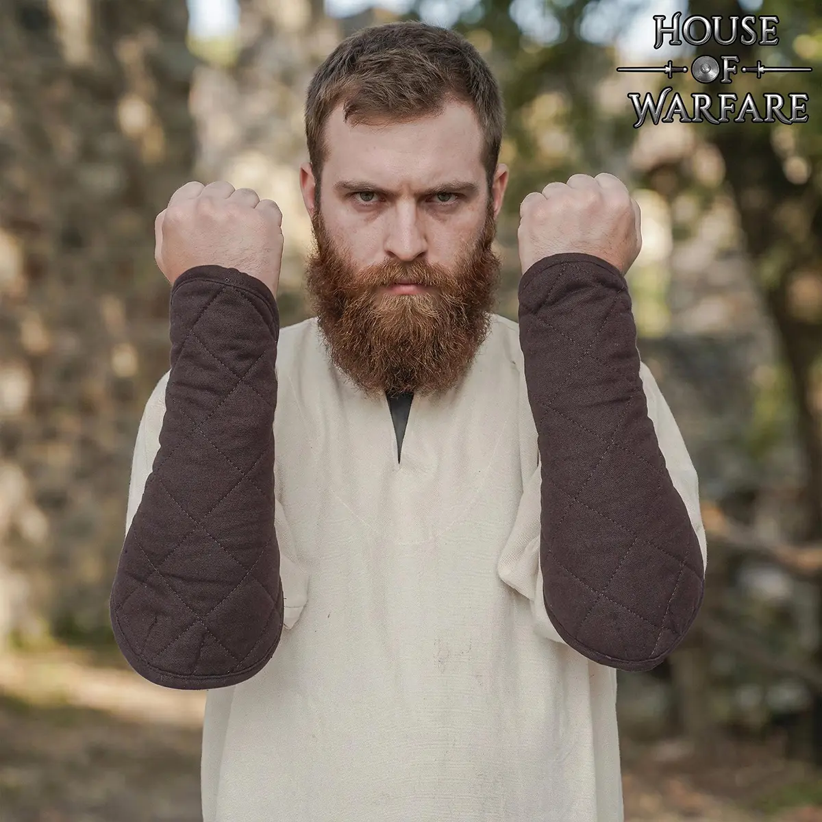 Historically inspired, medieval bracers like these were worn beneath or alongside armor to protect the forearms from strikes, friction, and fatigue. The quilted construction also helped absorb shock and prevent chafing.