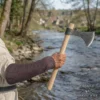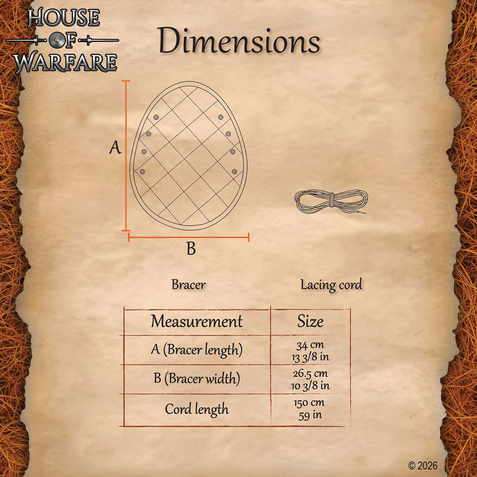 The bracers are secured with strong canvas cords, for adjustable lacing for a snug and comfortable fit on different arm sizes. This flexible closure system makes them easy to put on and remove.