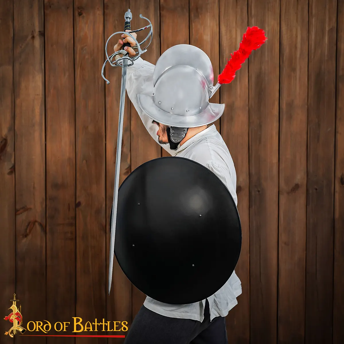 Measuring approximately 22 inches in diameter, the shield provides excellent coverage while maintaining maneuverability. With a weight of around 3 kg, it delivers a realistic handling experience without becoming overly cumbersome, making it suitable for use during events or practice.