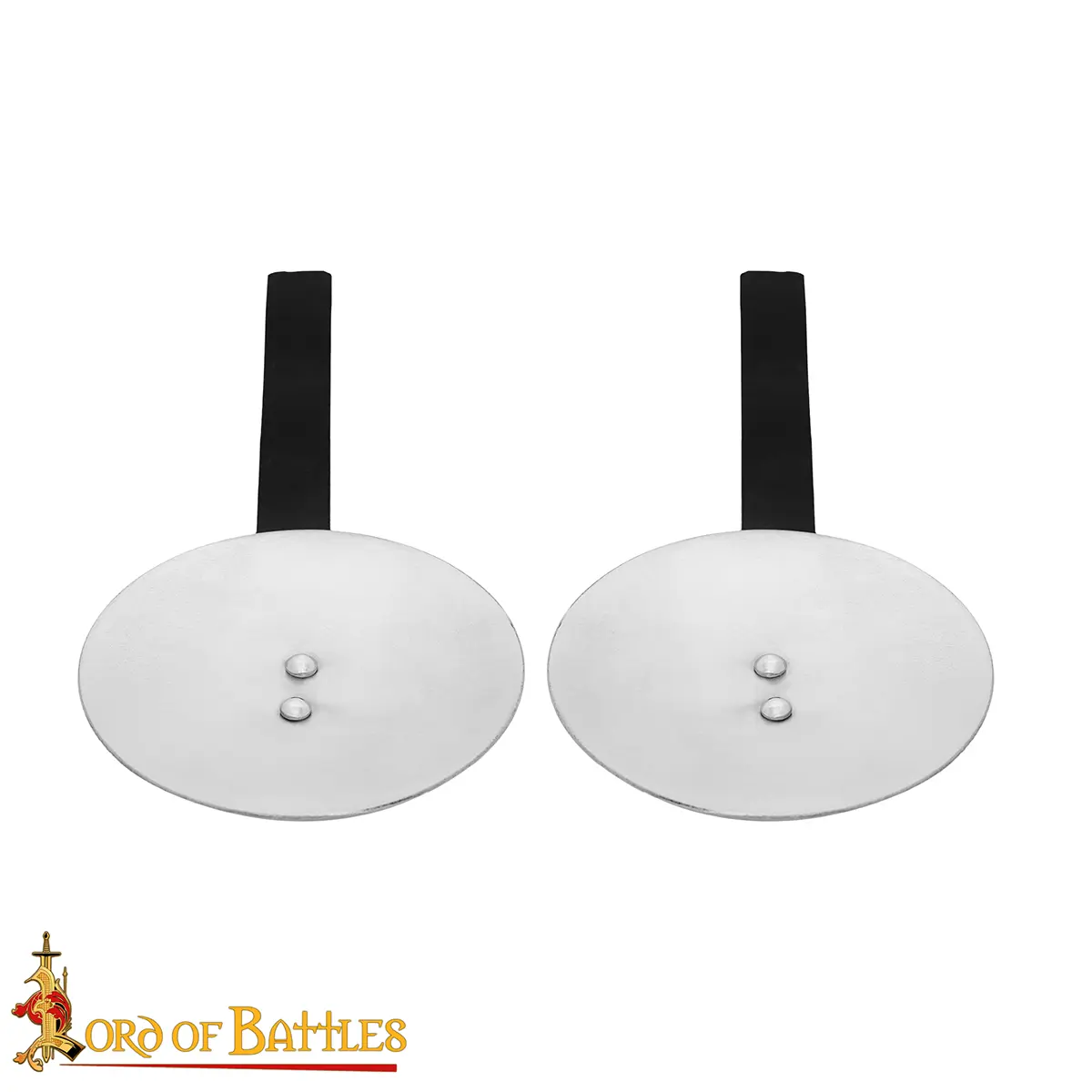 Our reproduction pair of Medieval Steel Rondels is hand-made from sturdy 16-gauge mild steel, providing both durability and historical authenticity. Each rondel is riveted to a long, genuine leather strap, making them easy to attach to gambesons, mail, or plate harnesses, just as warriors did centuries ago.