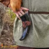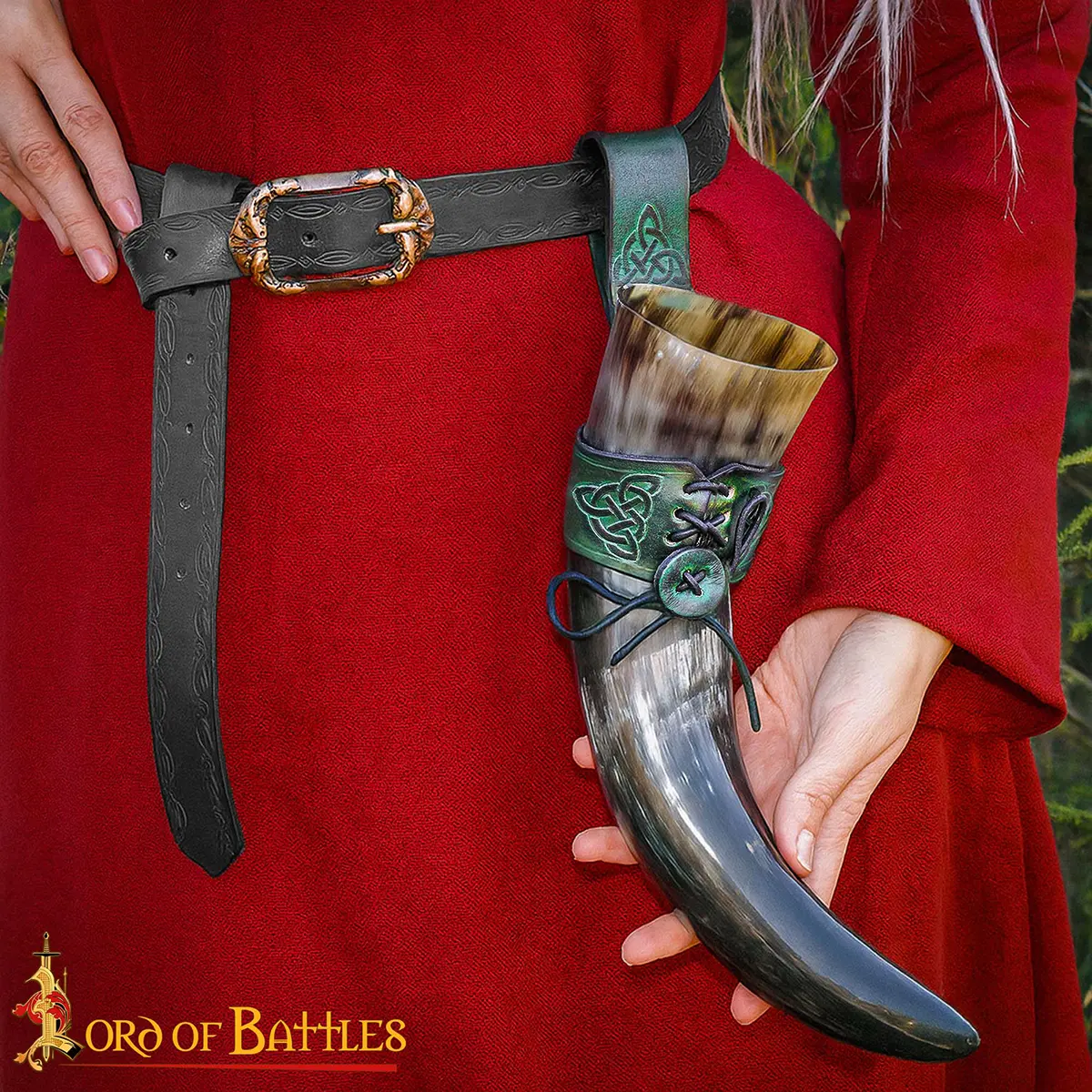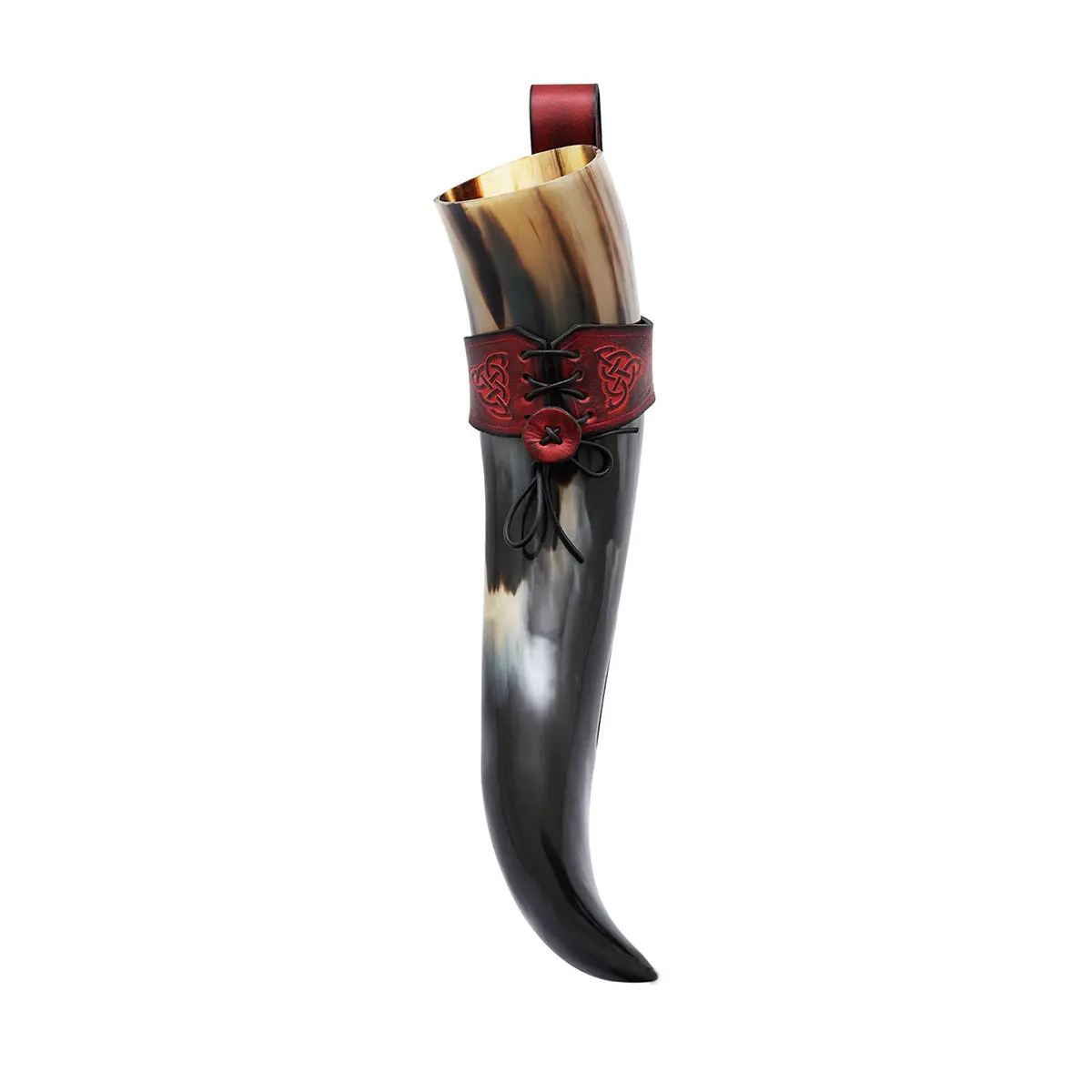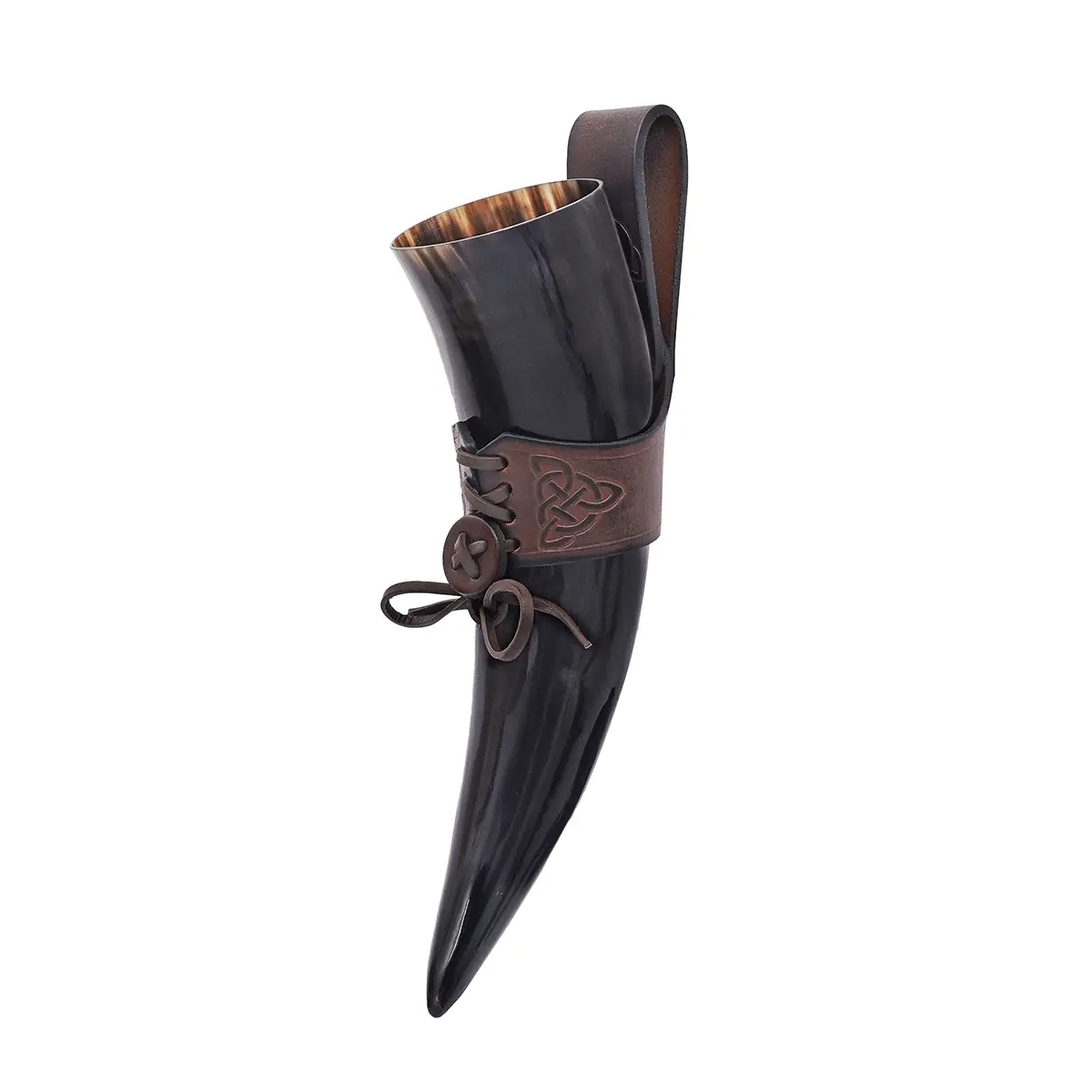 Imagine yourself walking through a medieval encampment or Viking gathering, your horn proudly hanging at your side, ready for the next toast. When raised, the horn reflects firelight and festivity, when carried, the holder completes your look with historical detail.
