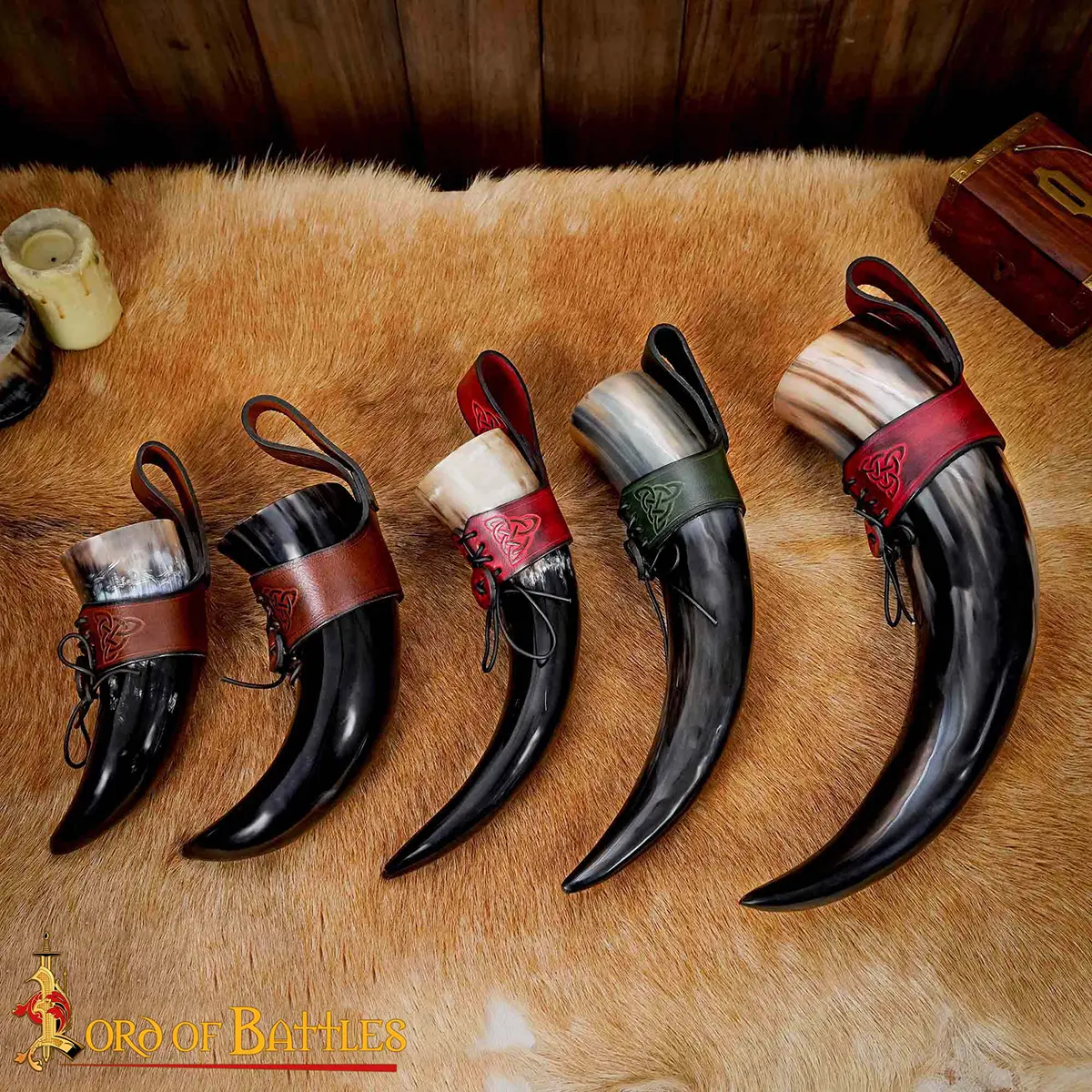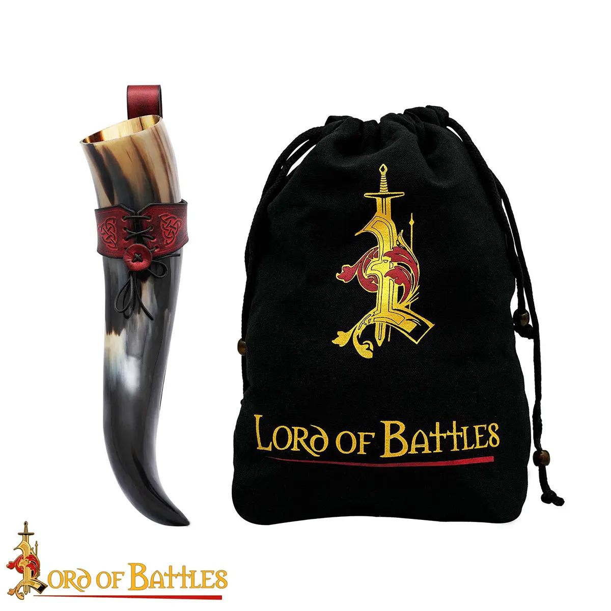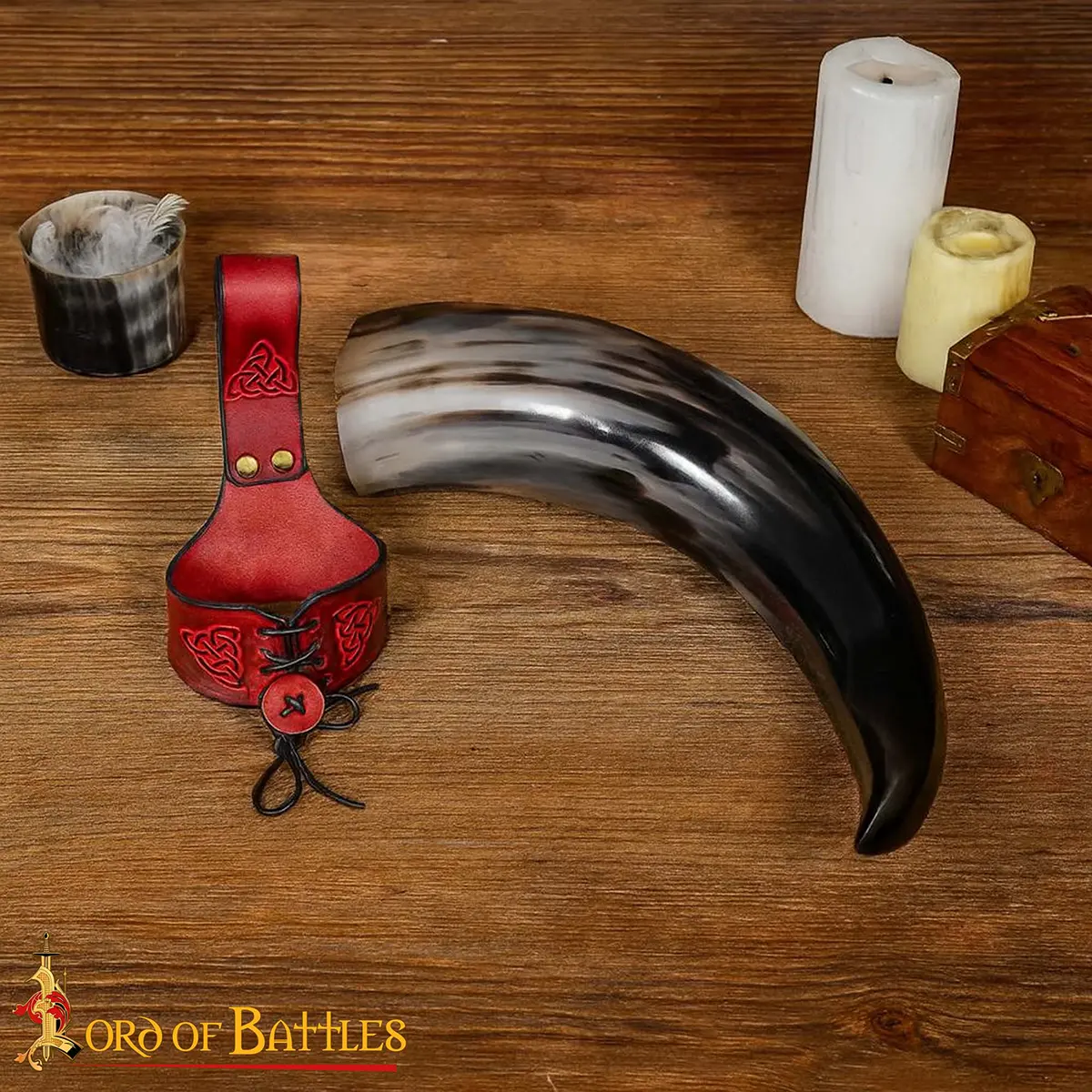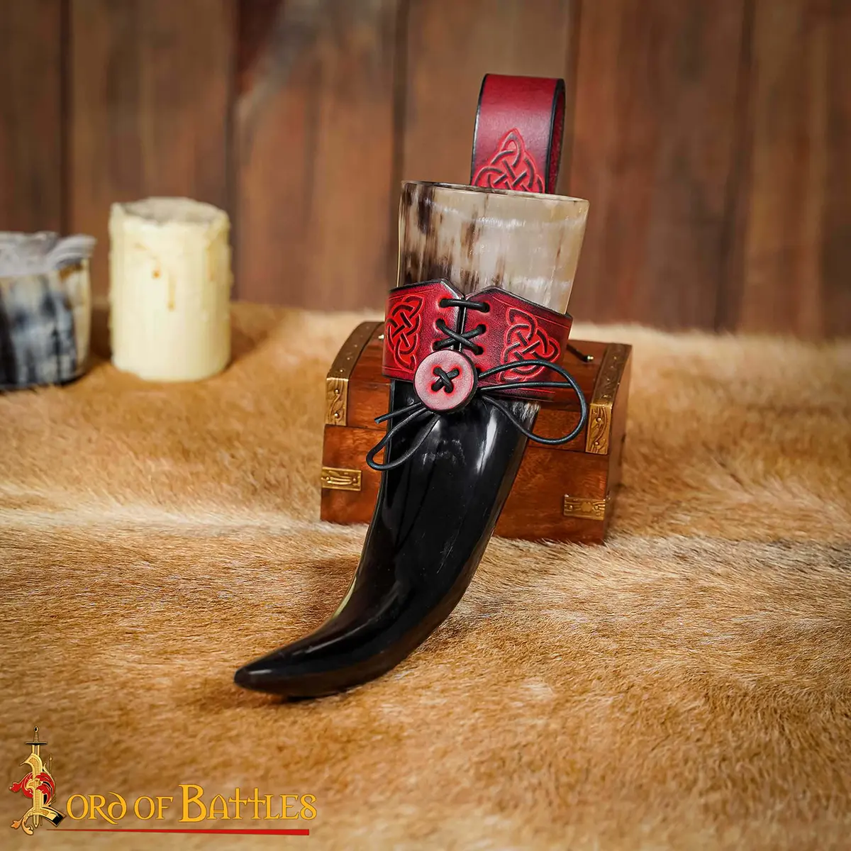 Imagine yourself walking through a medieval encampment or Viking gathering, your horn proudly hanging at your side, ready for the next toast. When raised, the horn reflects firelight and festivity, when carried, the holder completes your look with historical detail.