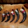 Each horn and leather holder is hand-crafted, so minor variations in size, shape, and color are natural.