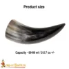 Each horn is ideally sized at approximately 60-80 ml (of a liquid with up to 20% alcohol content). Please avoid dishwashers and hot beverages. Before use, make sure to wash under running water. For a longer life, treat with bees’ wax after each use. Please note this is a natural product that decays with time and, hence cracks may come.