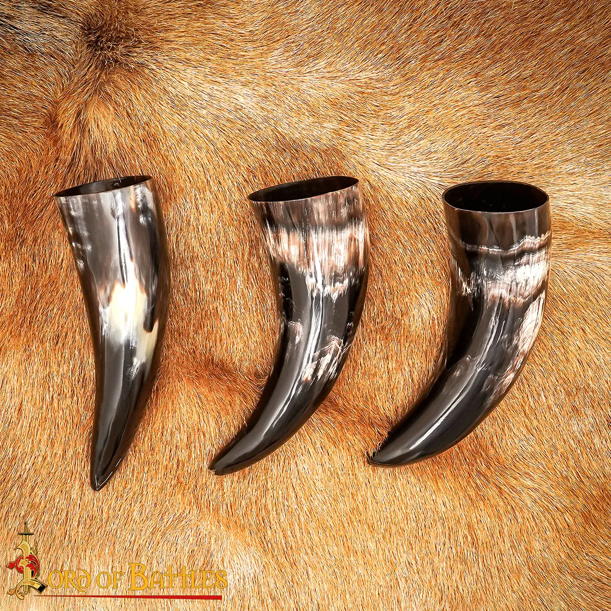 Are you and your trio looking for something to blend with your medieval spirits? You should definitely consider our medieval set of small drinking horns! Their classic natural design is precisely what makes them stand out! And for you to keep this natural product safe and protected, we provide a sturdy canvas bag with this set.