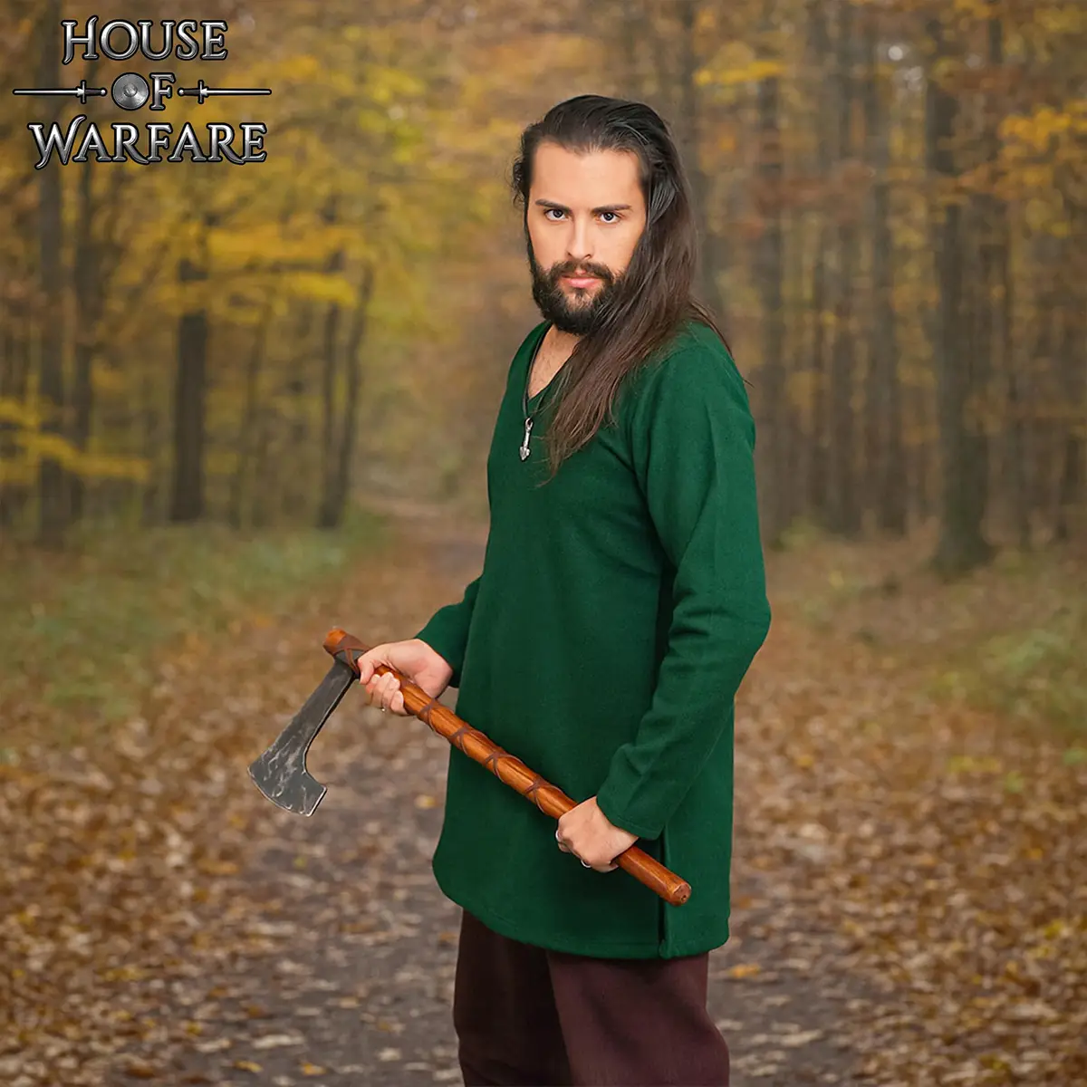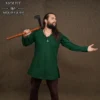 The rich green color reflects natural medieval tones, making it ideal for Viking warriors, medieval commoners, or fantasy characters. Whether you’re standing by a campfire, walking through a market, or performing on stage, this tunic’s weight and weave provide the perfect mix of warmth and breathability.