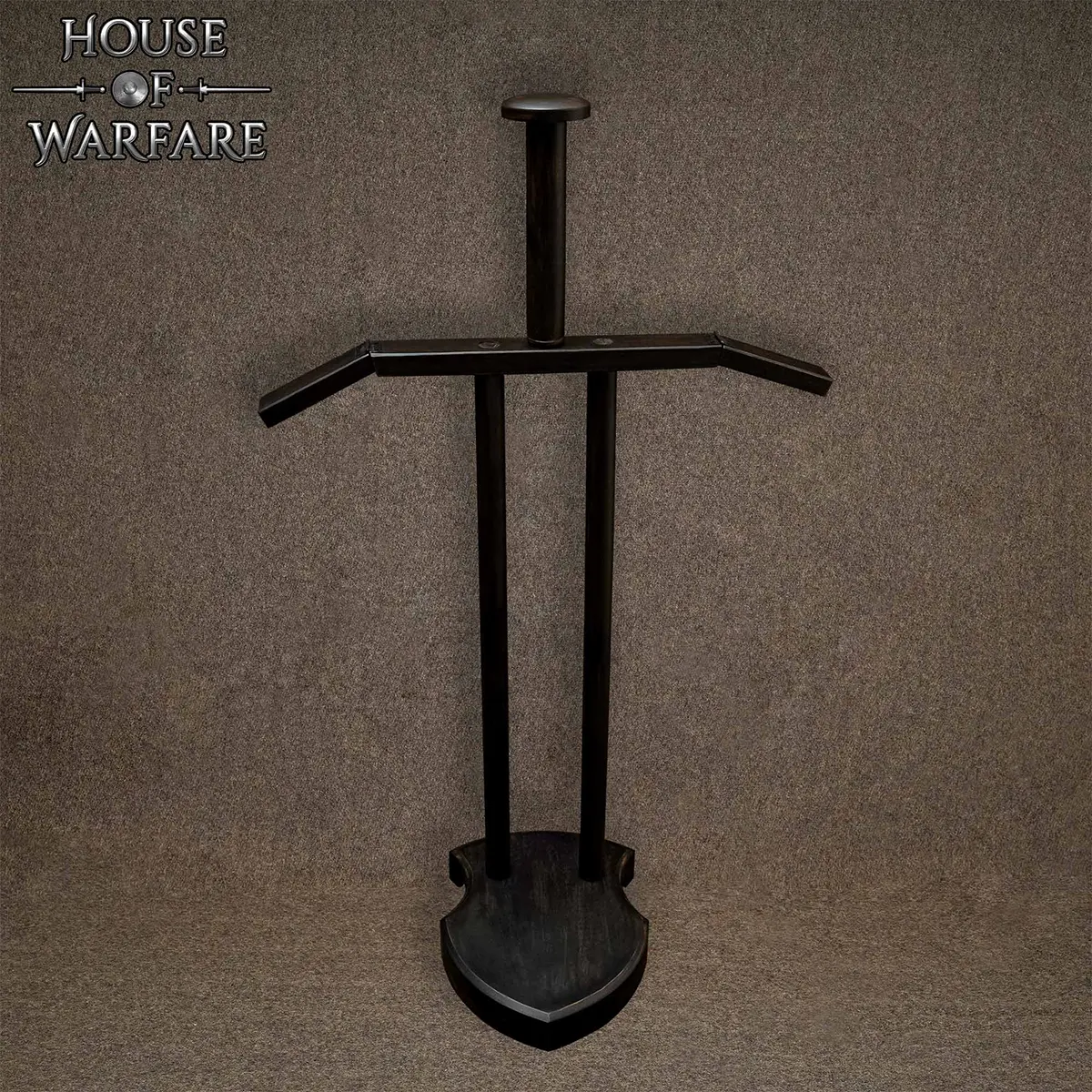 The dark tone of the wooden armour stand complements steel armor, chainmail, helmets, and leather gear beautifully.