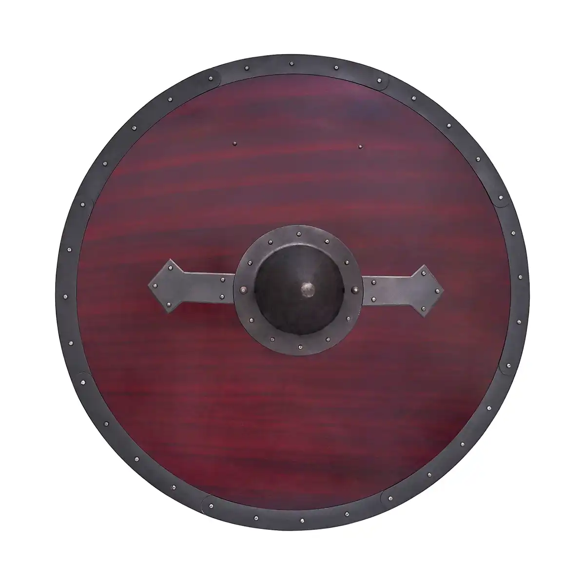 This medieval battle shield is great for LARP, stage combat, costume use, or as a display piece. Its design also closely reflects the form of a Viking round shield which had similar features.