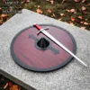 The shield is crafted from 12 mm thick solid wood, carefully shaped and polished to a dark, rich finish. Wood was preferred for shields because it absorbed impact better than solid metal, helping reduce shock to the warrior’s arm during combat.