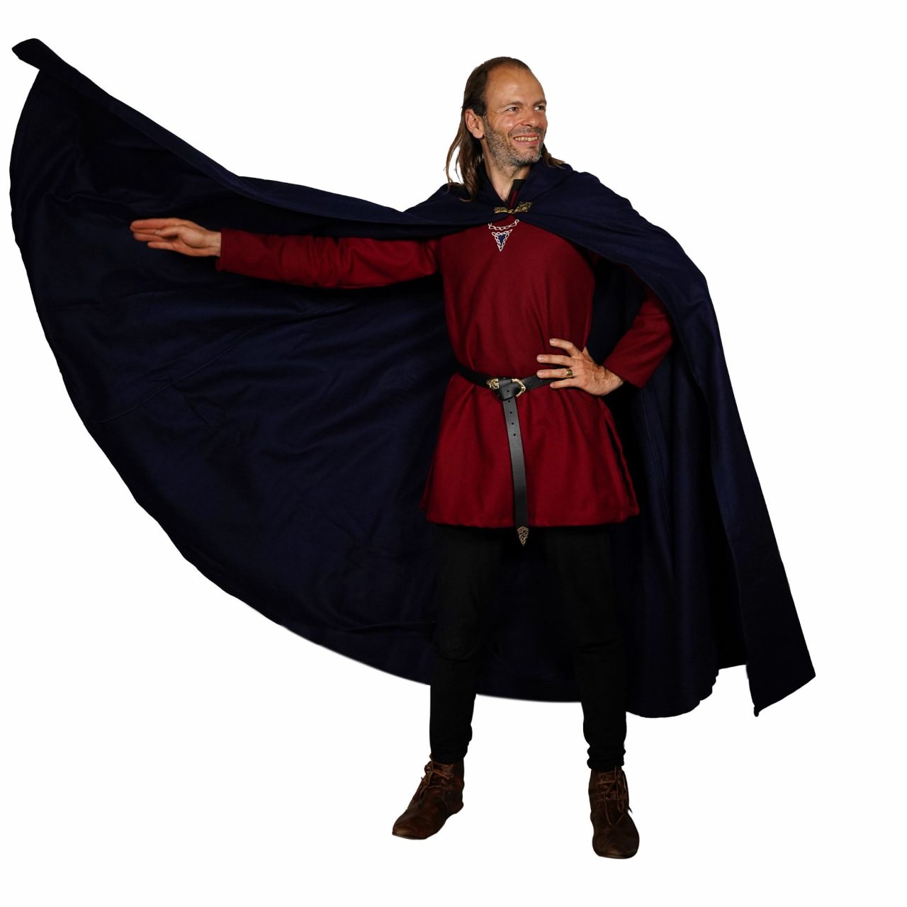 The natural wool fibers are renowned for their exceptional temperature regulation, keeping you warm in winter’s chill and comfortable during milder evenings. Its dense weave make the fabric water-repellent, ideal for outdoor use during LARP events. Unlike synthetic alternatives, wool breathes beautifully, preventing overheating while maintaining a majestic, flowing look that moves with quiet power and authenticity.