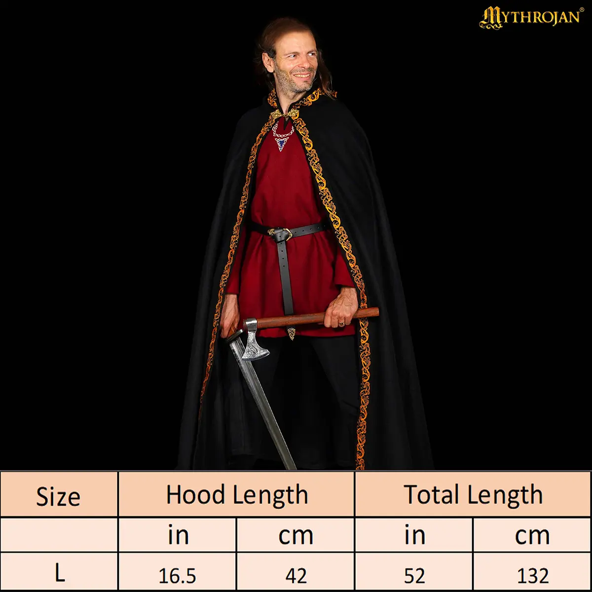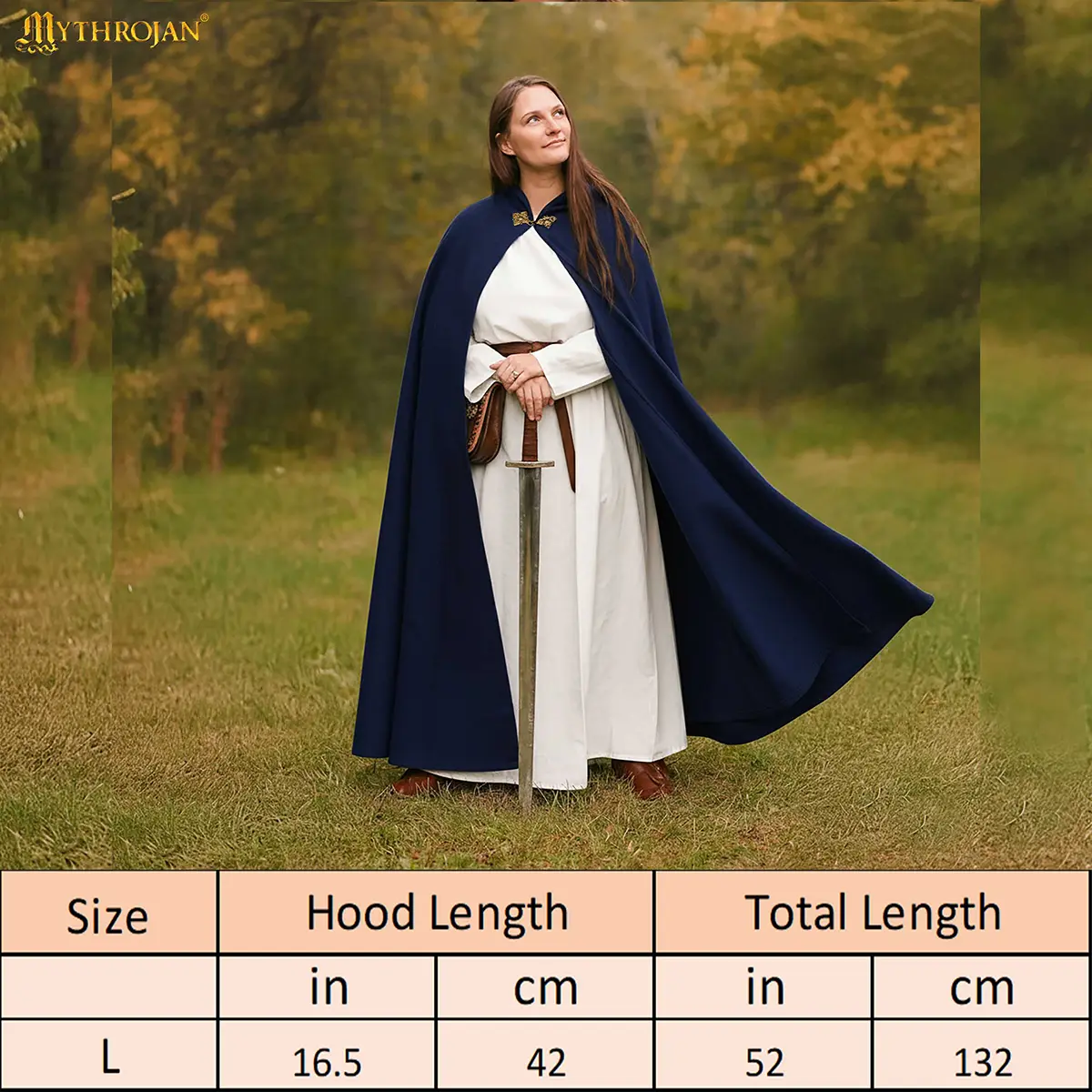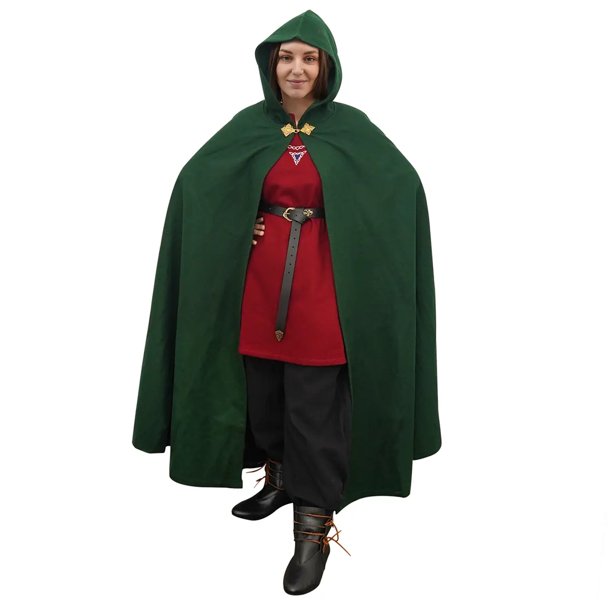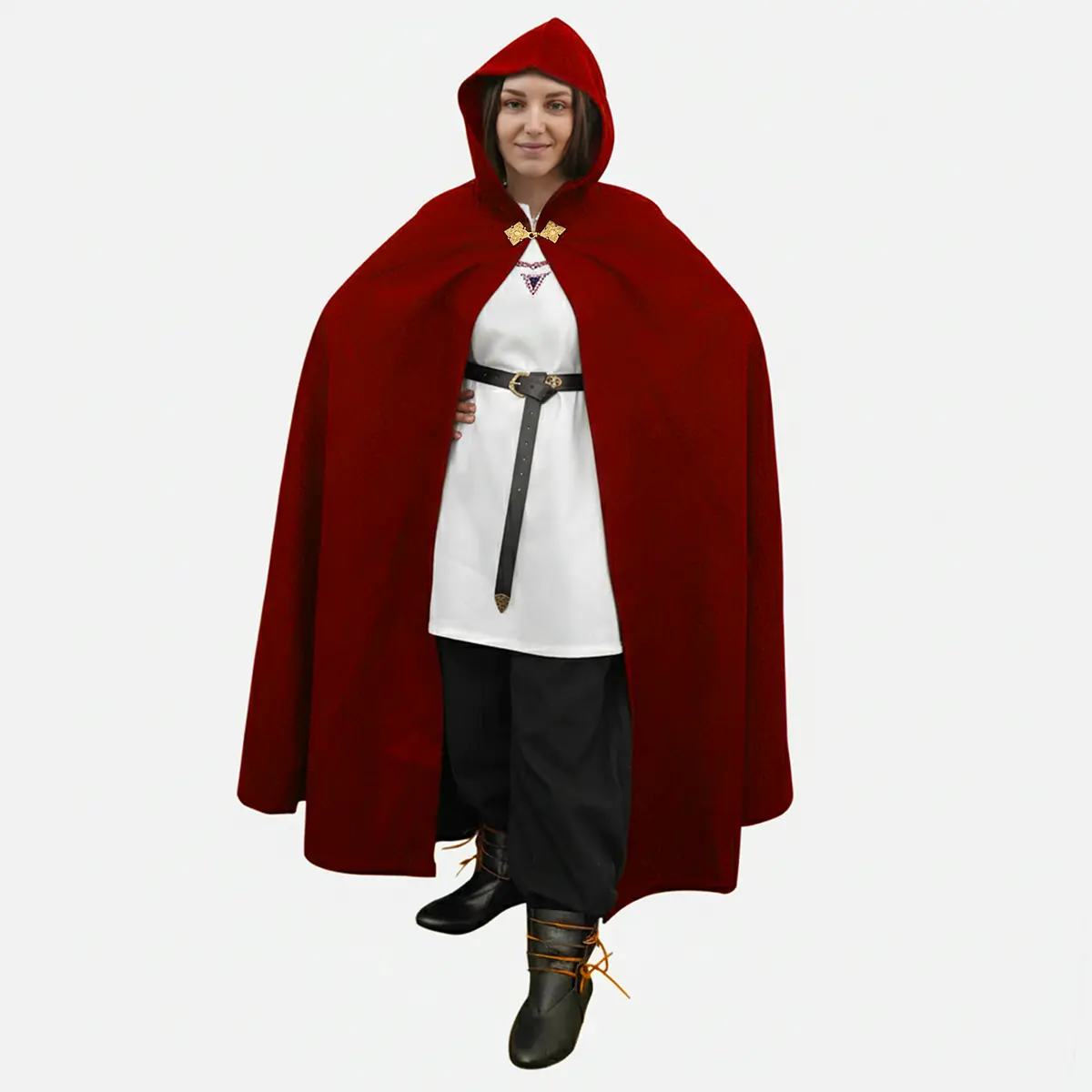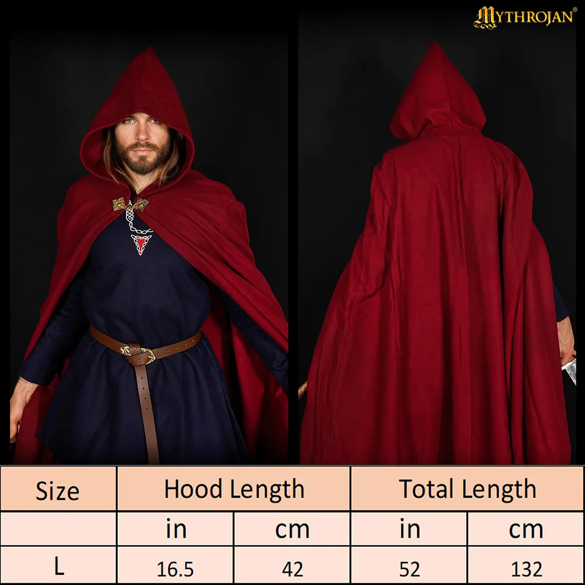 Each cloak is handcrafted by skilled artisans. The solid brass clasp, inspired by Viking and Rus designs, adds a striking historical touch while securing the cloak neatly across the chest. The large hood is for both protection and presence, evoking the mystery of wandering rangers and noble travelers of old.